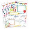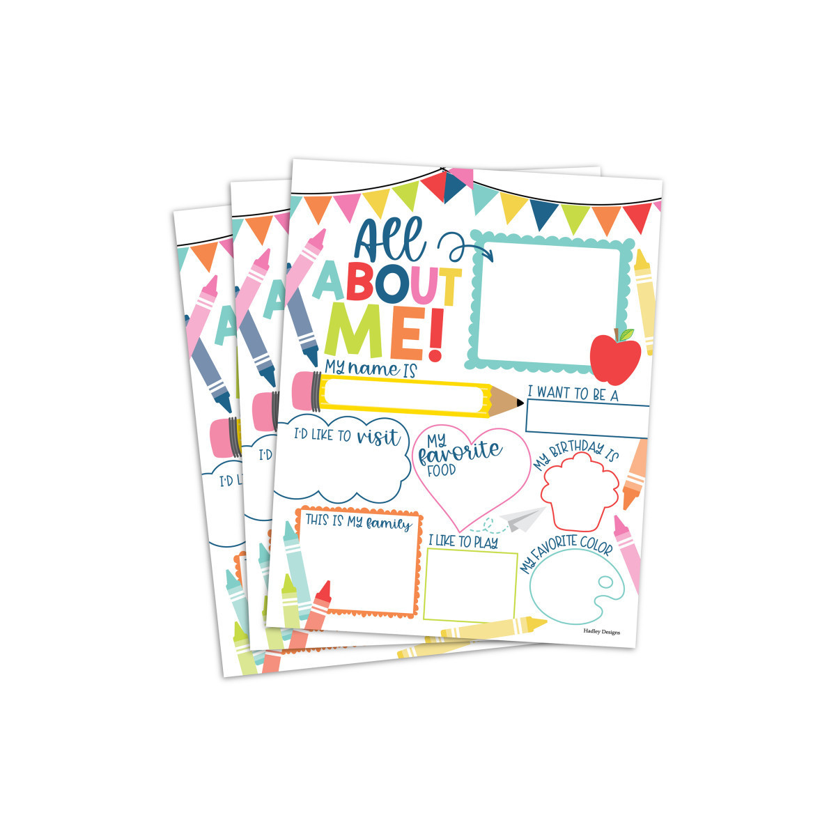 Looking to get to know your students better? Then you need this all about me poster set! Whether you're looking for preschool teacher supplies / preschool supplies for classroom, kindergarten teacher supplies, or elementary school teacher supplies, these posters are a fun way to help students of all ages and grade levels learn more about each other. Measures 11x14 inches with 20 posters included!