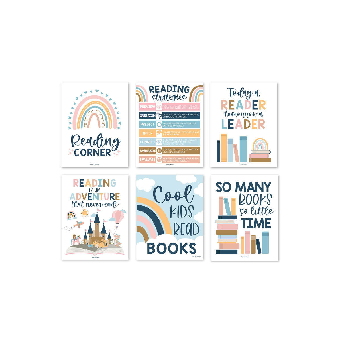 Develop a daily reading habit that sticks! You'll receive 6 different 11x14" classroom/library posters, so you can finally get kids excited about reading. Use these reading posters for library classroom decorations to get kids off screens and into books