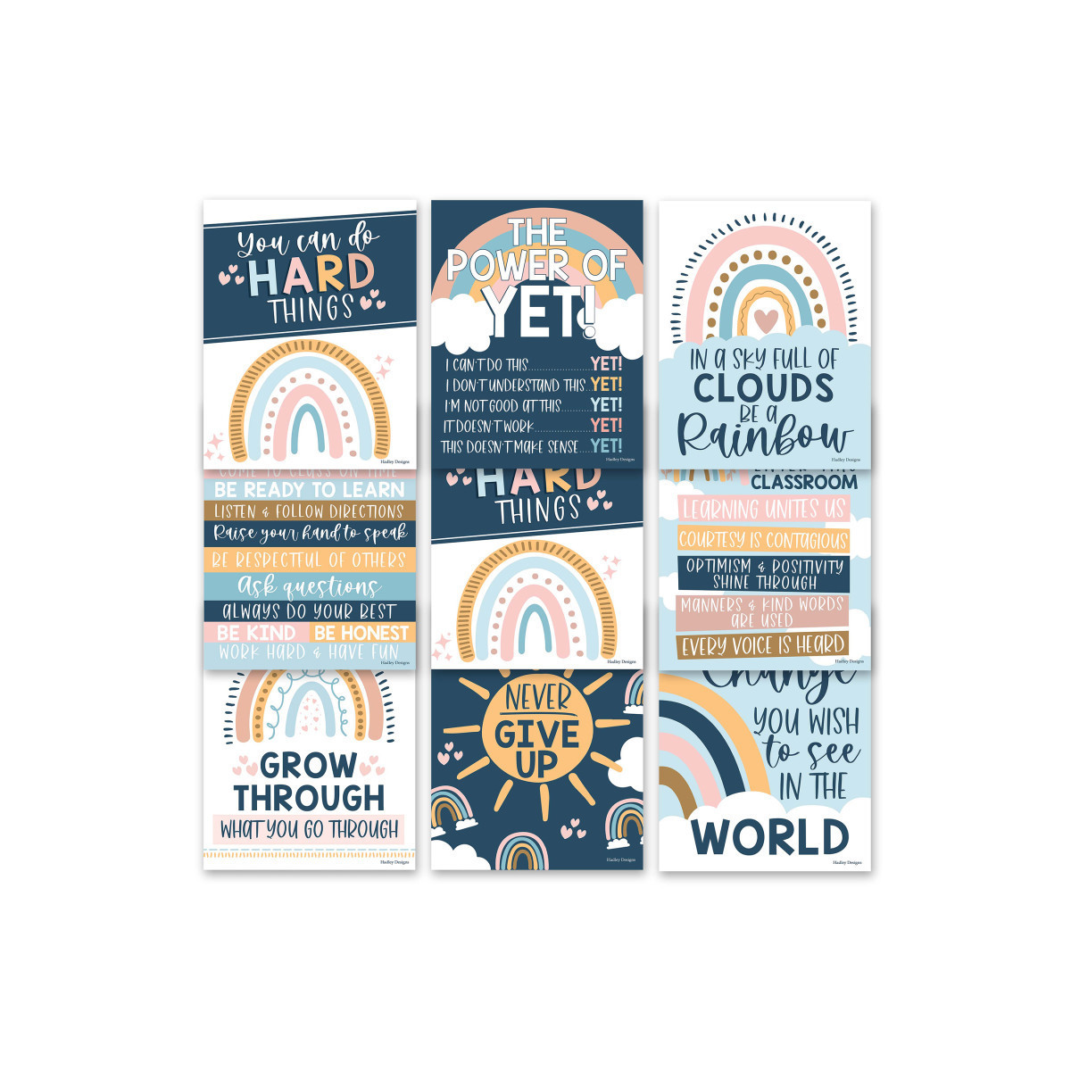 Create an inspiring learning environment! You'll receive 9 total 11x14" motivational classroom posters, so your students will always have encouraging and inspirational decor to keep them motivated for success all year long