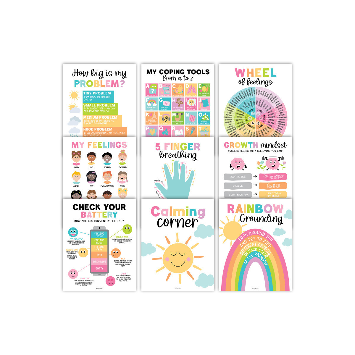 Tame tantrums and manage meltdowns! You'll receive 9 11x14" posters, so you'll never have to worry about meltdowns again. Use this feelings poster for kids / emotion chart for kids to calm children and stop tantrums in their tracks