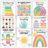 If you're looking to create a stress-free calming corner to help children cool off, then you need this colorful calming corner poster set. Our calm corner classroom decor is USA made