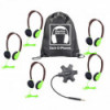 HamiltonBuhl® Galaxy™ Econo-Line of Sack-O-Phones with 5 Green Personal-Sized Headphones, Starfish Jackbox and Carry Bag