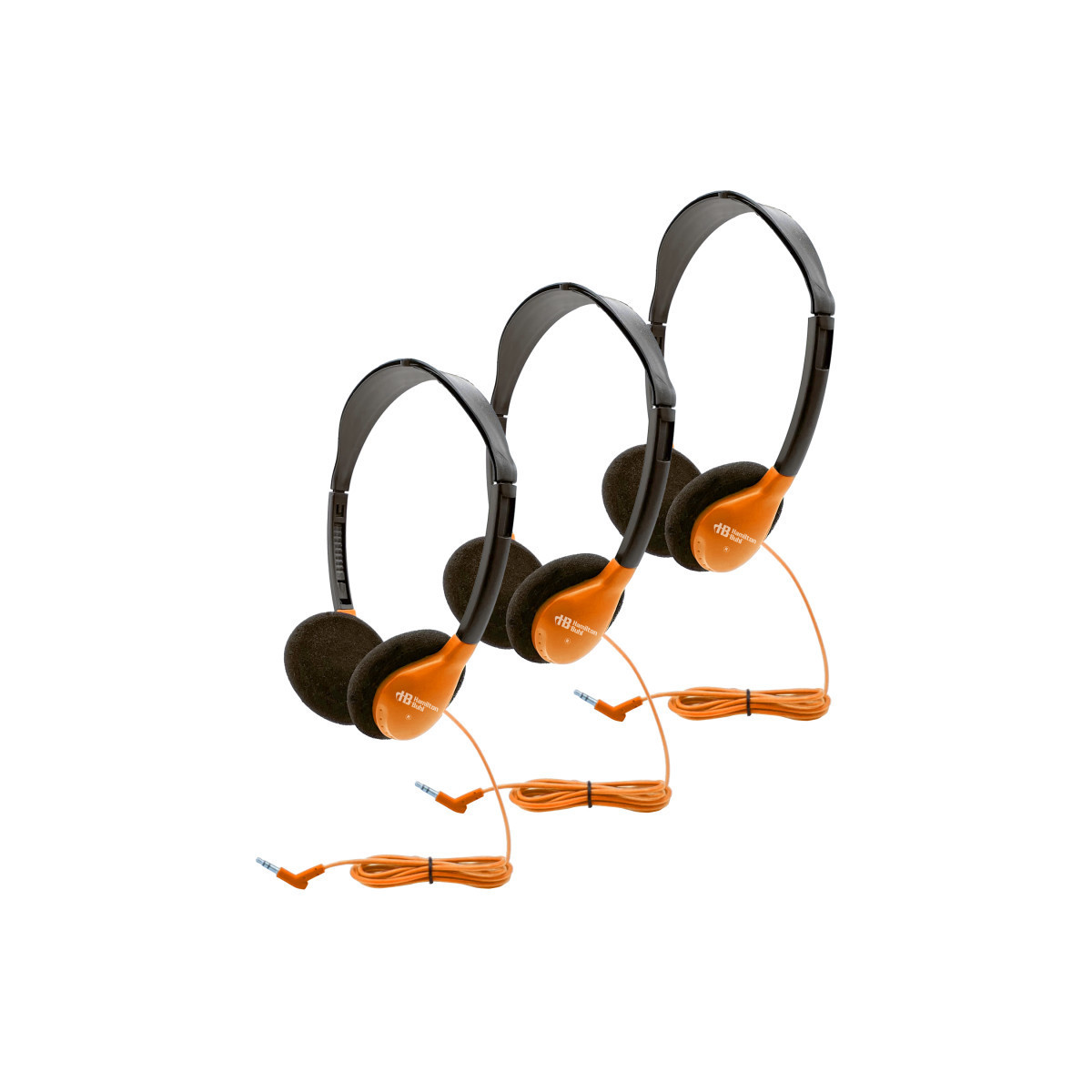 Personal On-Ear Stereo Headphones in Orange. The HamiltonBuhl personal on-ear headphone is the ruggedly constructed, robust yet lightweight headphone ideal for today's tech filled classrooms. With the ever growing classroom technology, each student needs a high quality, durable yet comfortable headphone to get the most out of their high tech lessons and the HA2 headphone not only provides rugged durability and high quality sound, but the lightweight, on-ear design allows for all-day comfort and easy compact storage. Sold as a pack of 3 headphones.
