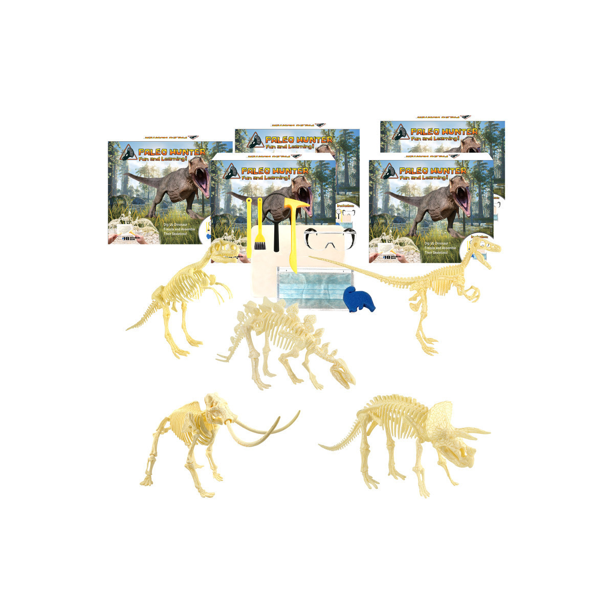 HamiltonBuhl® Paleo Hunter™ Dig Kit for STEAM Education - All Five Dinosaurs – Stegosaurus, Velociraptor Rex, Mammoth, Triceratops Rex and Tyrannosaurus Rex Spark a curiosity for science and paleontology inspiring them to pursue a path toward discovery. HamiltonBuhl's Paleo Hunter™ Dig Kit is an awe-inspiring project for kids ages 6+. Paleo Hunter™ Dig Kit is a perfect project for any child curious about the world around them. Exciting, educational and fun!
