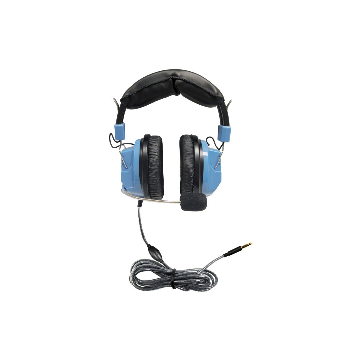 The HamiltonBuhl SCG-AMV headset with gooseneck microphone is the perfect accessory for any of your tablets, Chromebooks, smart phones or almost any mobile device. The SCG-AMV features over-ear noise-reducing, swivel ear-cup design; soft, washable and replaceable leatherette ear pads and soft padded headband. With its easy to mark light blue color, our exclusive 4' Dura-Cord™ – a chew-resistant, PVC-sleeved, braided cord for long-term durability and reliability and its own anti-lice bag – heavy-duty, write-on, moisture resistant, reclosable bag – this fatigue-free headset is ideal for use in and out of the classroom and excellent for testing!