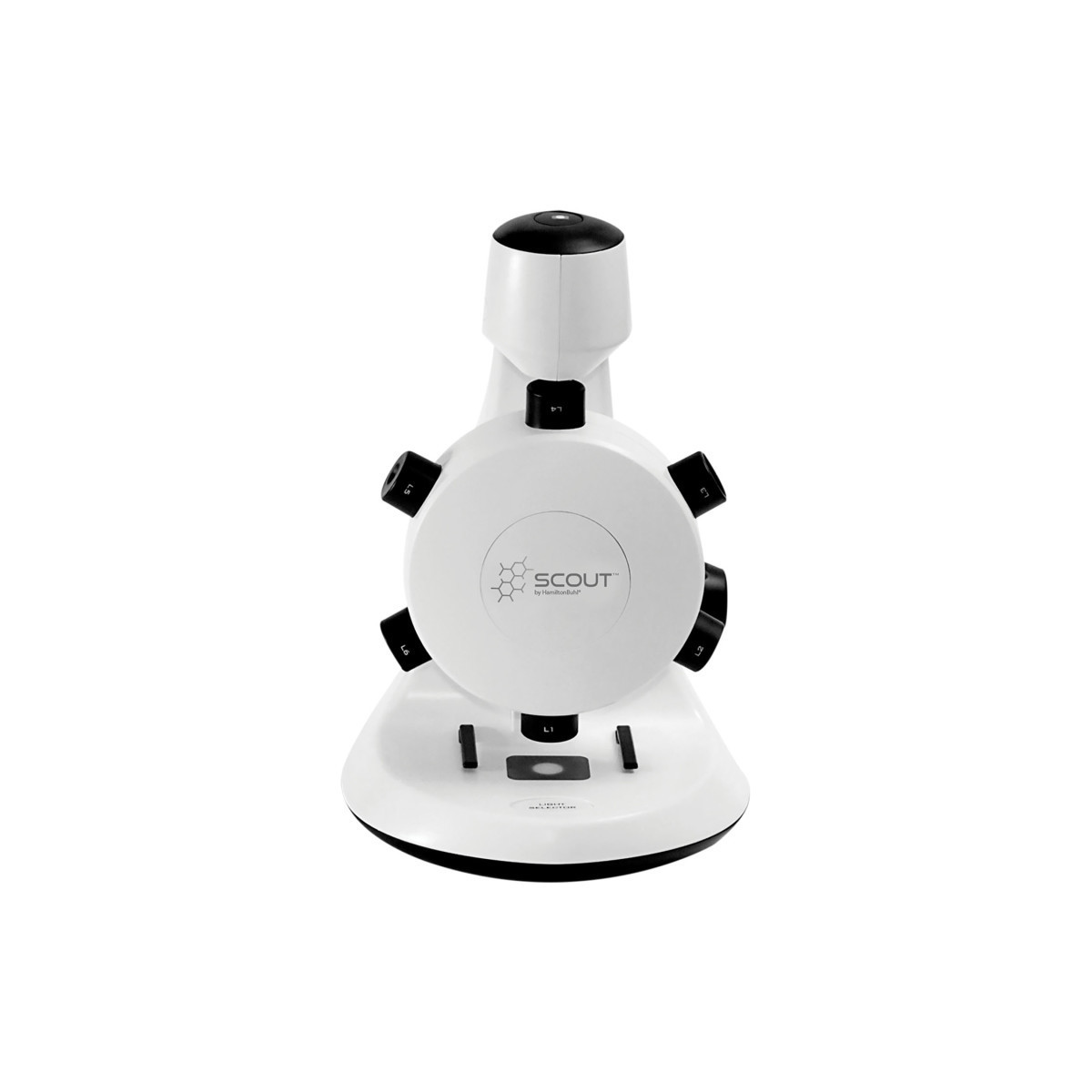 - Built rugged for younger students, Scout™ features six different magnification lenses on a vertical rotating wheel
