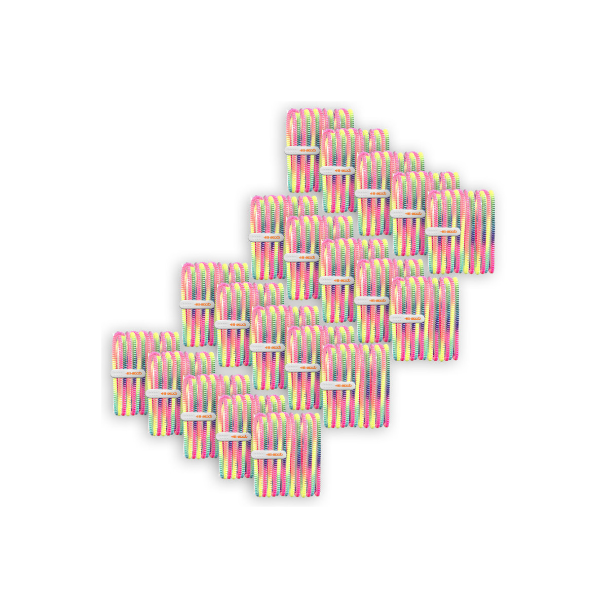 Skooobs® are the quick, easy and hip solution to the tangled cord mess everyone has to contend with. These lightweight, durable spiraled TPU plastic covers protect cords from stretching, kinking and tangling – each time, every time! Eliminate the hassle and frustration of knotted earbuds and charging cords with Skooobs! • Lightweight, durable and easy to put on any earphones • Tangle-free, hassle-free cords right out of your pocket or bag • Protects cords from stretching and kinking. No more knots! • Assorted vibrant, fashionable and fun colors available • Use it for function, enjoy it for fashion • Each Skooob is about 78 inches • Sold as a pack of 20 Skooobs Skooob covers are sold without earphones.