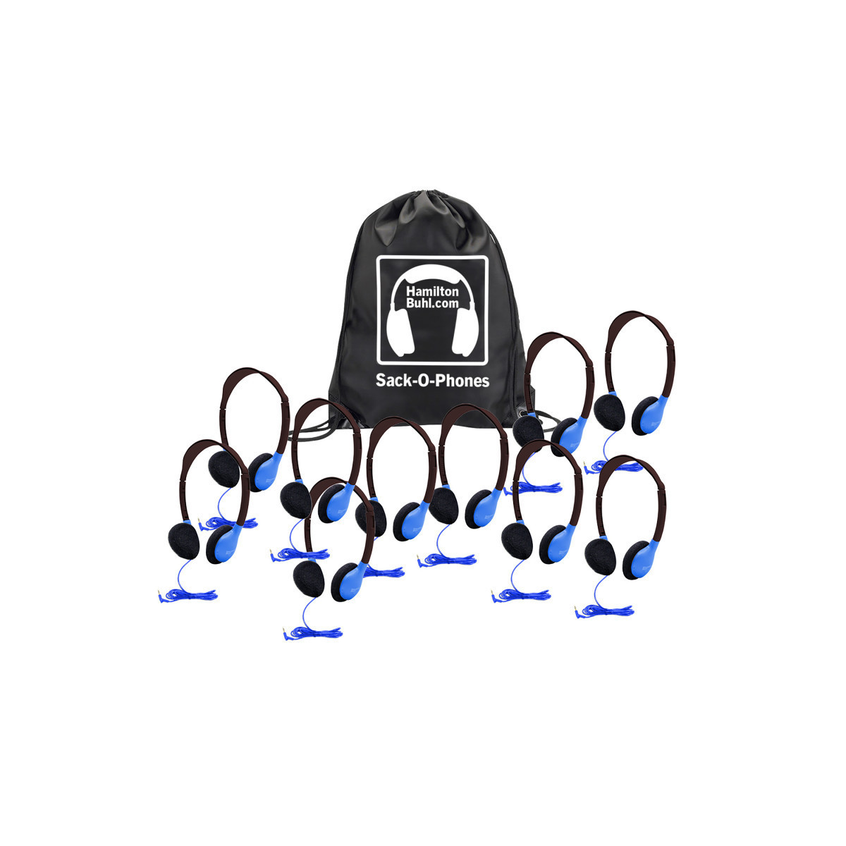 This pack includes 10 personal-sized Blue (HA2-BLU), on-ear headphones – the ruggedly constructed, robust yet lightweight headphone – ideal for today's tech-filled classrooms or working and studying remotely. HA2 headphones not only provide rugged durability and high quality sound, but the lightweight, on-ear design allows for all-day comfort and easy compact storage.
