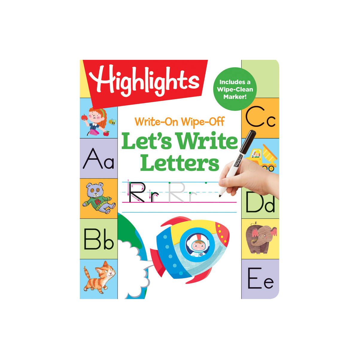 Writing letters has never been more fun! The reusable write-on wipe-off pages and wipe-clean marker provide endless hours of learning fun with puzzles and activities that increase writing confidence and build fine-motor skills. With wide tracing lines and a fun and engaging puzzle for each letter, kids will have a blast as they learn to write and recognize uppercase and lowercase letters. Letter recognition is an important step toward getting ready to read, and Highlights infuses Fun with a Purpose™ into this activity. With vibrant art and fun puzzles, Write-On Wipe-Off Let's Write Letters takes kids on an alphabet adventure. A variety of activities, including searches and mazes, will engage and entertain kids and build their confidence as they practice essential writing skills. Kids love that they can draw all over these books, and parents love that the write-on wipe-off format lets kids trace over and over again and again.