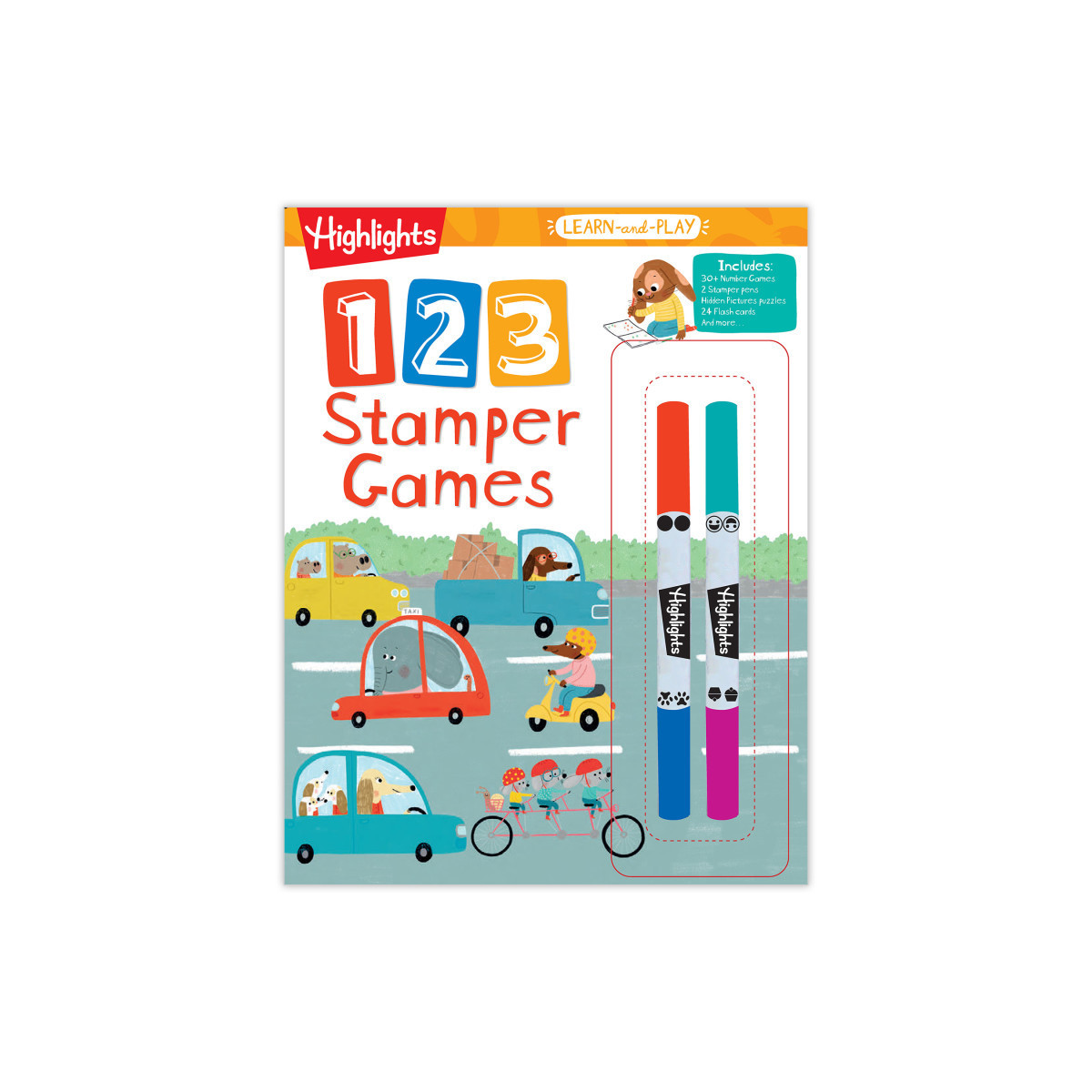 With 64 pages of full-color preschooler number activities, this comprehensive book-gaming experience provides a hands-on learning experience with included washable, self-inking multicolored stampers and 24 write-on wipe-off flashcards that turn learning about math into an interactive game. With an attached clamshell holder and included envelope, all components are stored neatly within the set, making it great for on-the-go, hassle-free entertainment.