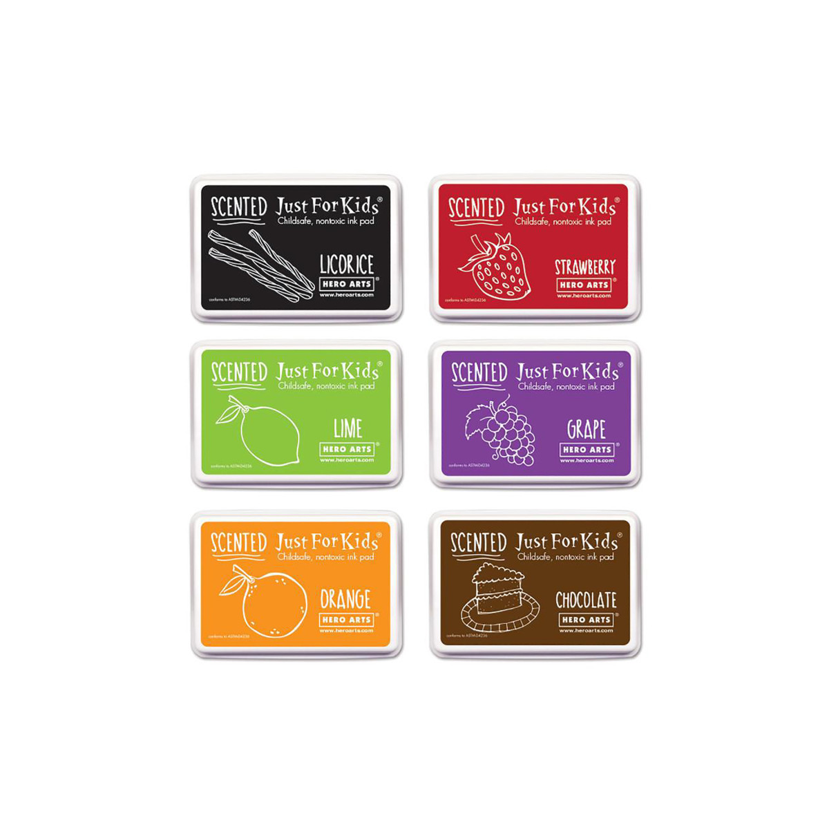 Child-safe scented inks are ideal for younger stampers as they are water-based, kid-safe and non-toxic. The impressions fade into the paper and work best on non-glossy surfaces. A bundle of all six of our popular Just For Kids Scented Ink Pads. The bundle includes: