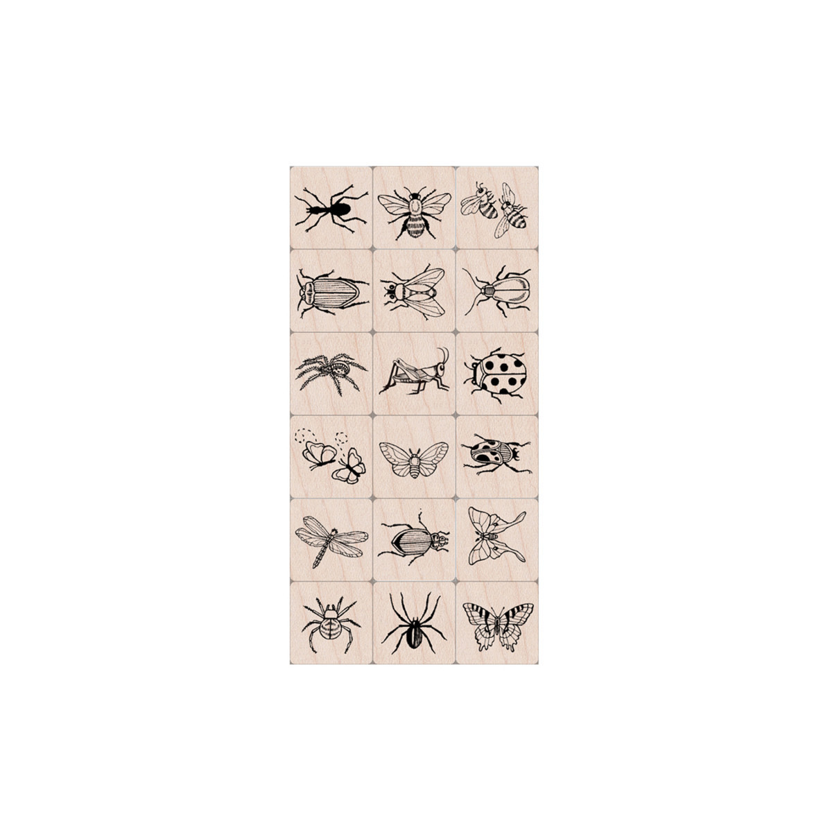 Our Ink 'n' Stamp contains 18 woodblock stamps and a childsafe ink cube, all packaged in a handy tub measuring 3" x 5". Mix and match stamps to create cards and crafts. Also includes a 1" ink cube.