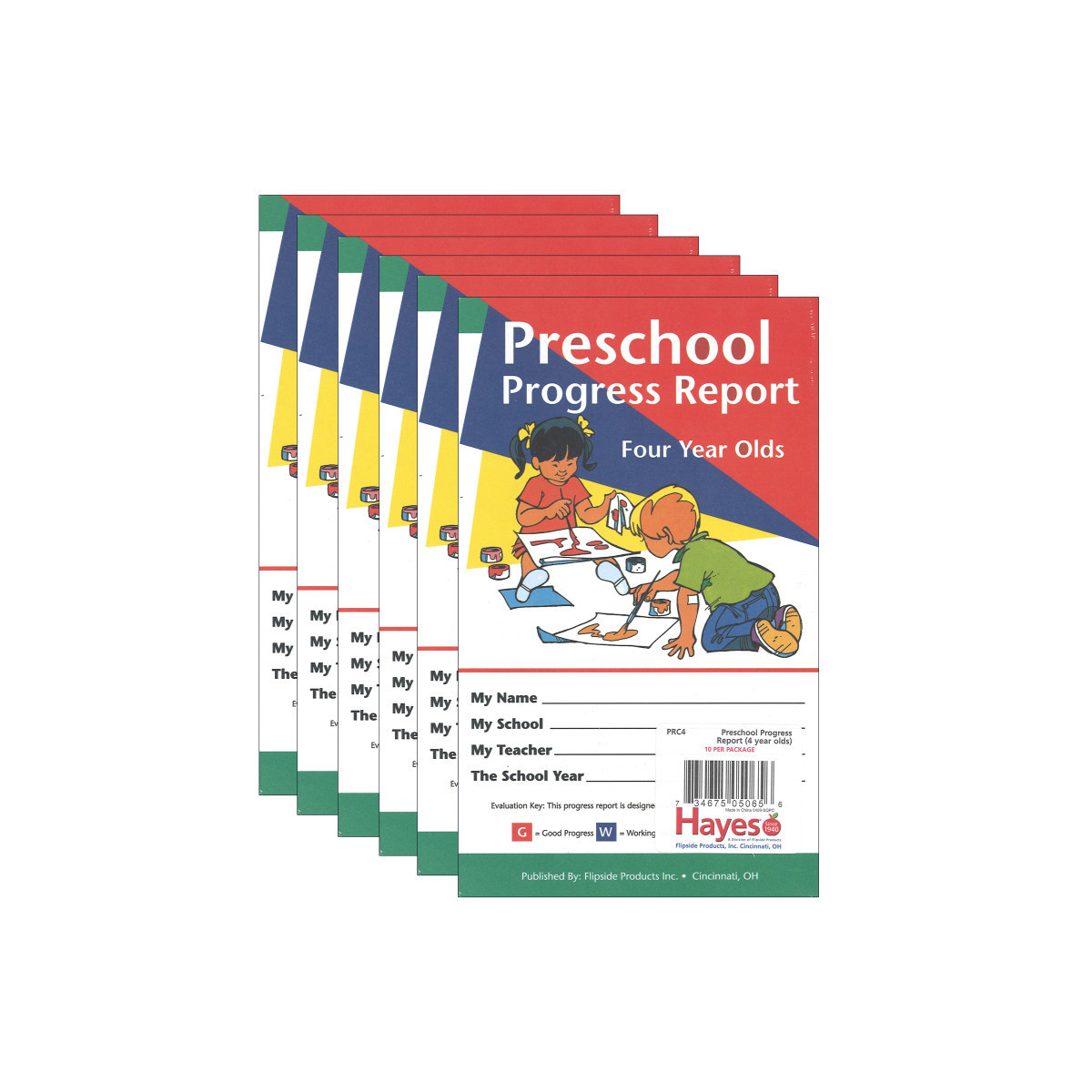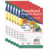 Preschool Progress Reports designed for 4 year olds provide a detailed listing of achievements in various curriculum areas. Colorful, easy-to-read Hayes reports help parents appreciate the progress their children have made. Areas include self-reliance skills, practical skills, social and emotional skills, work habits, listening and speaking skills, fine motor skills, gross motor skills, reading and math readiness and music, art, science, and social studies readiness skills. Evaluation Reports are 2 sided, full-color tri-fold sheets. Closed measure 5" x 8". Each pack includes 10 reports. Sold as 6 packs for a total of 60 reports.
