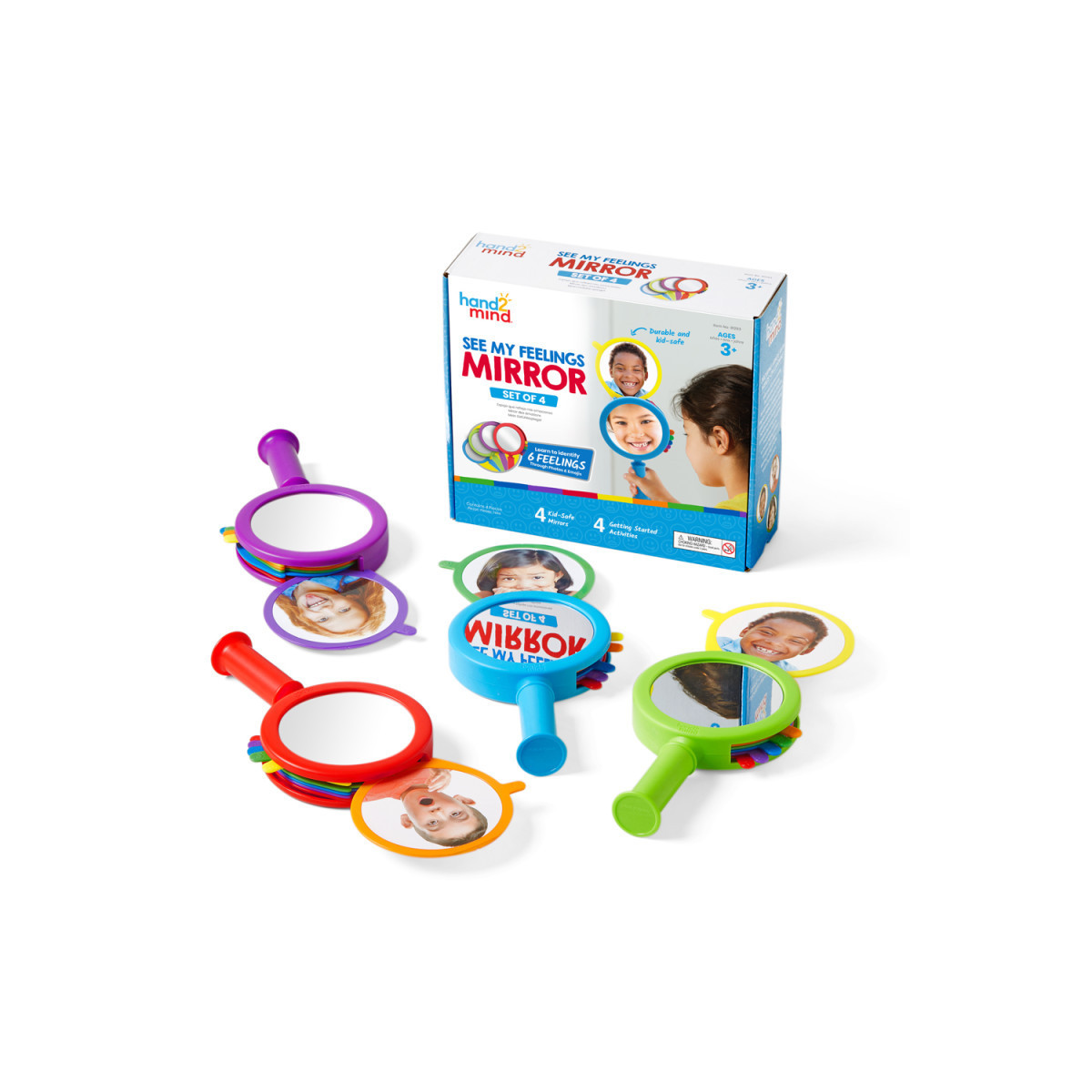 The child-friendly mirror helps children recognize and identify with different pictured emotions in themselves and others