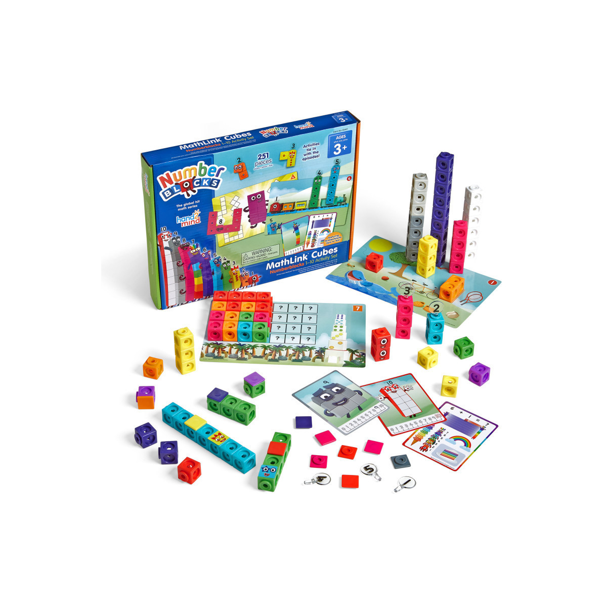 Children see how numbers really work as they build their own Numberblocks from 1 to 10 and master key early learning math skills through hands-on discovery and play. Numberblocks are the friendly characters from the global hit math series. The 251-piece set includes 100 Numberblocks MathLink® Cubes; 59 faceplates; 54 stickers; 11 Numberlings; 11 Character Cards; 15 Double-Sided, Reusable Activity Cards; and a stand for Zero. The set also includes an Activity Guide which features fun ways to develop early math skills including counting, sequencing, addition, subtraction, part-whole relationships, number recognition, and problem-solving.