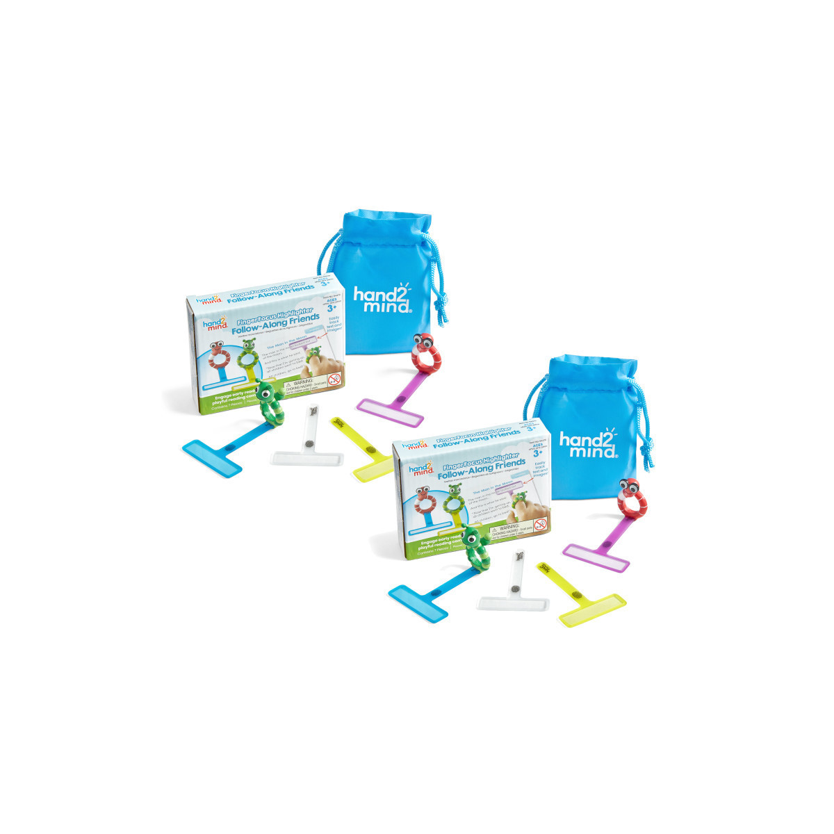 Make learning to read fun and engaging! This is the perfect tool to help emerging readers easily track text as they learn to read. Young children will love using the bookworm or caterpillar ring to help them focus on a line of text or an image. Each set includes 2 Follow-Along Friends (bookworm and caterpillar), 4 Interchangeable, Colored Highlighter Wands (blue, pink, yellow, and clear), and 1 Drawstring Storage Bag. Sold as a pack of 2 sets.