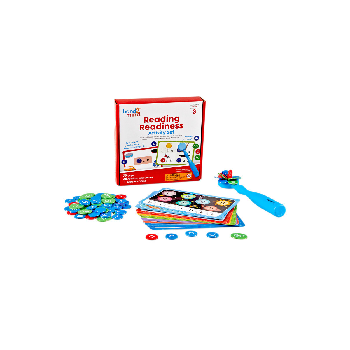 Children have fun using the Magnetic Wand and different types of chips to learn early literacy skills including matching uppercase and lowercase letters, learning initial and ending sounds, and blending and segmenting sounds. Include 1 Magnetic Wand, 52 Round, Lowercase Alphabet Chips, 24 Oval, Two-Letter Sound Chips, 3 Round, "By-Heart" Chips, 14 Double-Sided Activity and Game Cards and 1 Activity Guide.