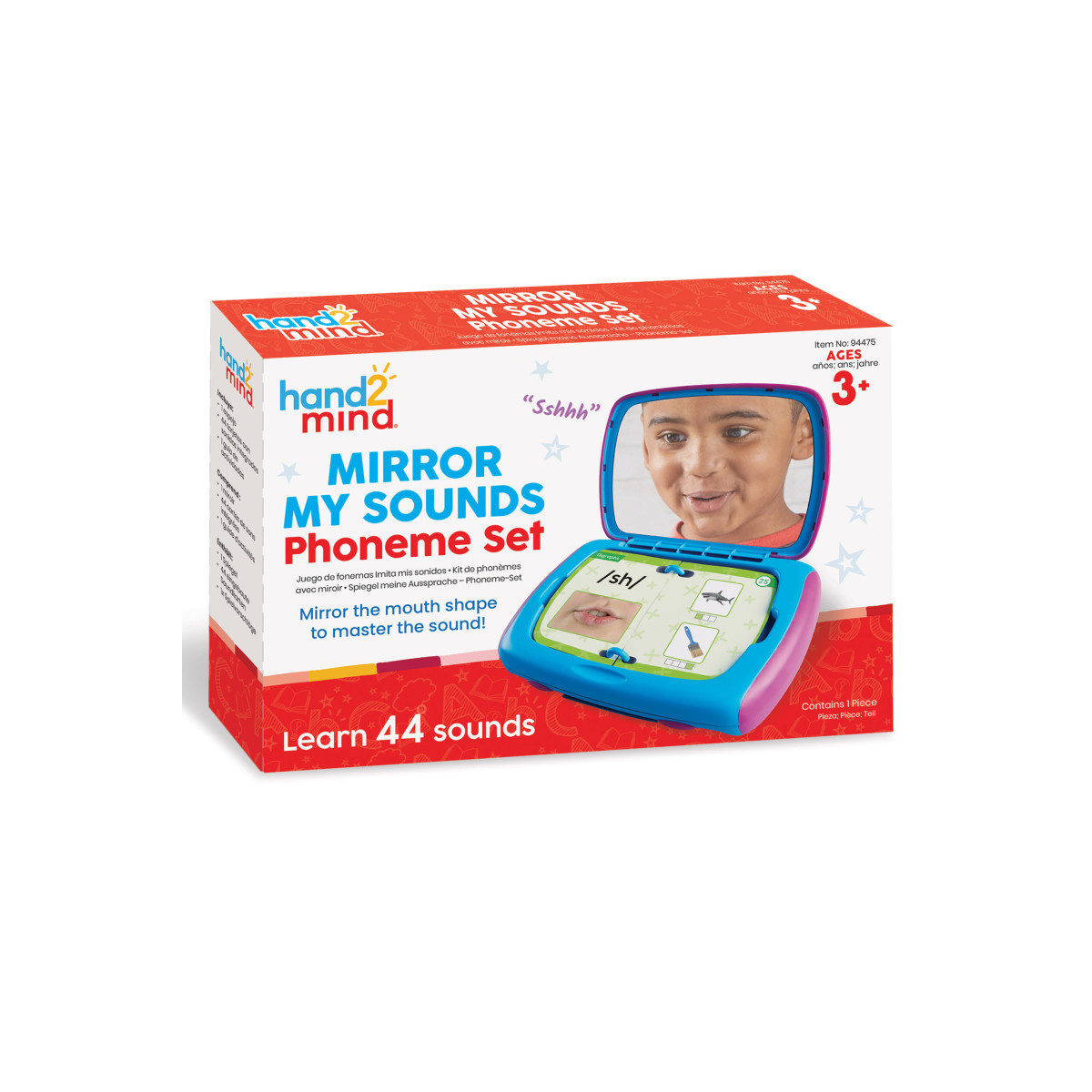 Children can practice making 44 sounds of the English language with this easy-to-use set. They use the included booklet to see the correct mouth and tongue position for each sound while the mirror helps them see themselves as they make the sound. This one-of-a-kind set is the perfect solution for teaching phonetics to early readers.