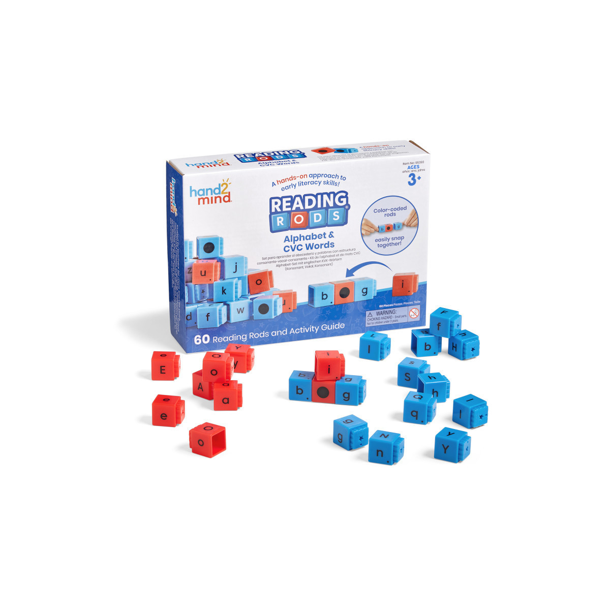 Our reading rods help with constructing CVC words, or consonant-vowel-consonant words for early readers as well as larger words for next steps.