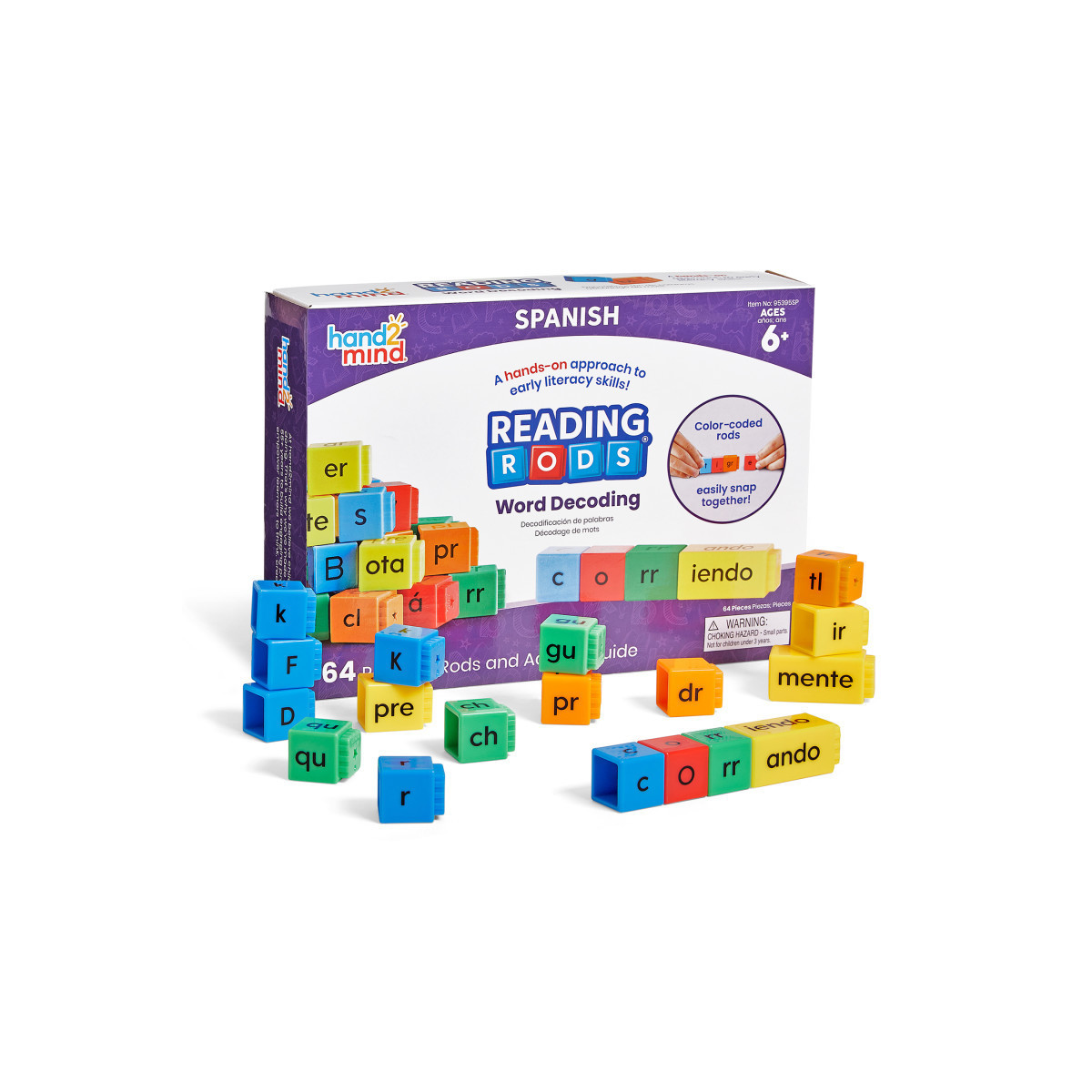 Help young learners build strong Spanish literacy skills with Reading Rods, a hands-on, color-coded phonics manipulative set designed for interactive learning. These science-based, multisensory tools provide a tactile and visual experience that enhances reading development by focusing on digraphs, consonant blends, vowels with accents, inverse syllables, and affixes. The 64 snap-together rods make it easy for children to practice, reinforce, and master essential reading skills while engaging in fun, structured activities. A teacher-developed Activity Guide, available in both English and Spanish, offers additional support for classroom centers, bilingual education, or home learning.