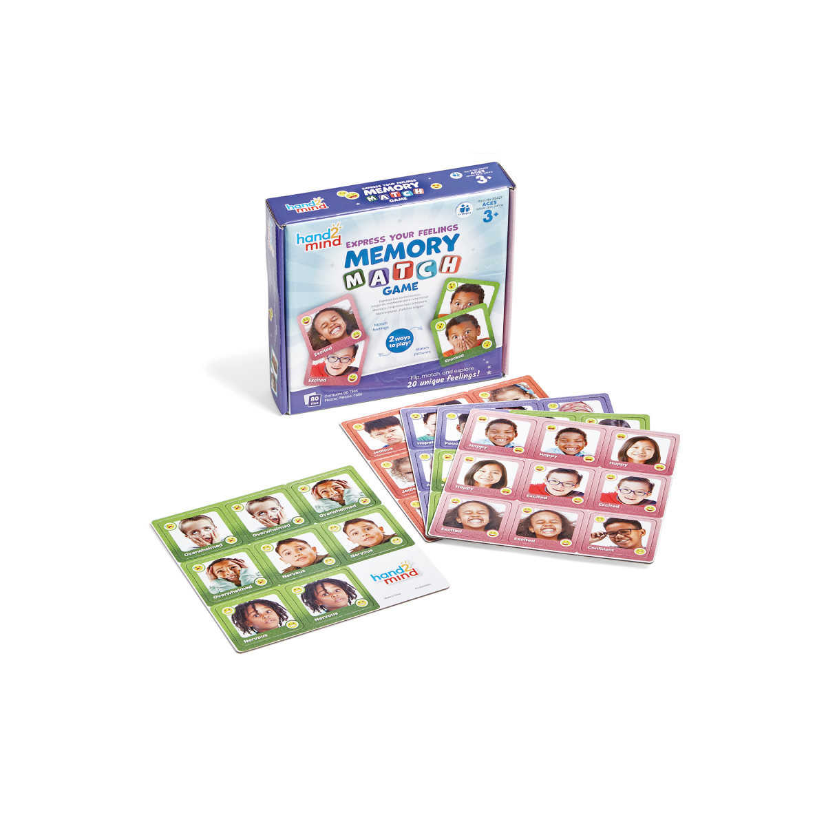 Build memory skills and explore diverse feelings with this fun, interactive memory game! The Express Your Feelings™ Memory Match Game features a wide variety of expressive faces that reflect how feelings can look and feel different. Children will match 20 unique feelings (see Feelings Chart, back cover) in a familiar memory game format. Spark conversations, build emotional vocabulary, and keep children engaged as they learn about their own feelings and those of others.