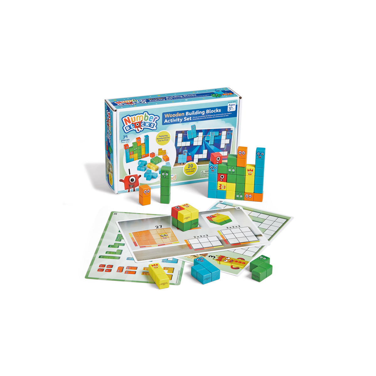- Includes 28 Wooden Numberblocks Shapes (4 Ones, 3 Twos, 4 Threes, 5 Fours, 12 Fives), 10 Double-sided Activity Cards, 1 Storage Bag, and 1 Activity Guide.
