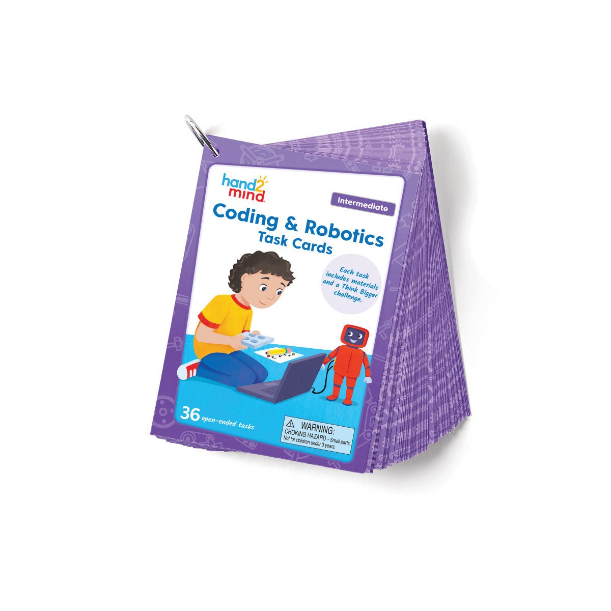Level up coding & robotics skills with hands-on task cards! These cards provide structure by giving students challenges to problem-solve and reach a solution. This Intermediate Task Card Set helps students apply and expand basic coding and robotic skills with more advanced tasks. Each set includes 36 standards-aligned task cards. Each card has an open-ended task prompt based on a real-world situation, a list of needed materials, illustrations, and a Think Bigger challenge to encourage deeper learning and exploration. Illustrations on each task card helps students to visualize the desired outcome of the task. These Task Cards are available in both beginner and intermediate levels, ensuring students develop essential digital skills. This set is the Intermediate Set for ages 8+.