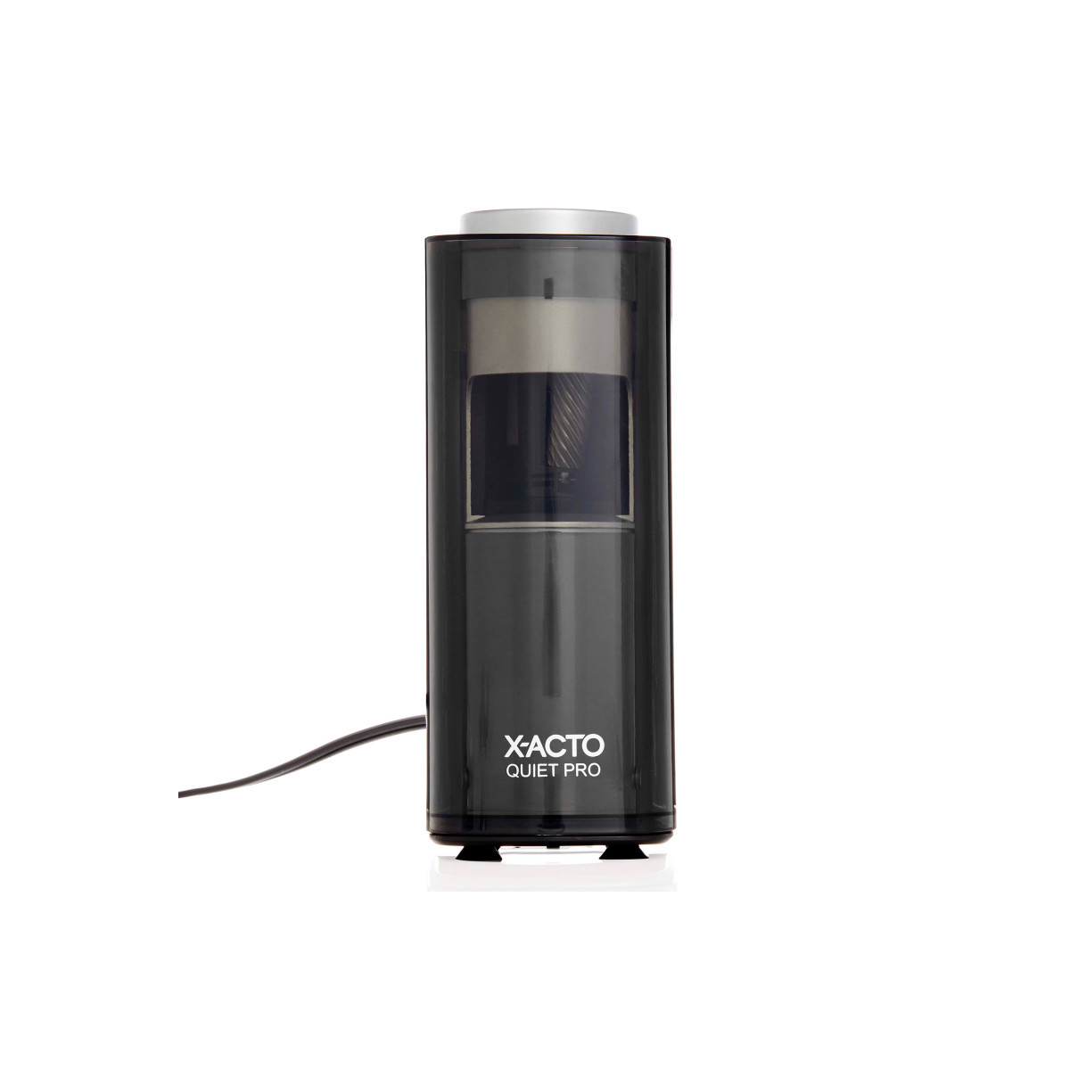 Ultra quiet and break resistant, the X-ACTO Quiet Pro Electric Pencil Sharpener provides less breakage and less noise for less frustrations and distractions. With the SmartStop feature, the pencil sharpener prevents over-sharpening by automatically shutting off the electric motor when the pencil reaches ideal sharpness. Meanwhile, a bold LED light lets you know when the sharpening is complete. The auto-adjust dial works with nearly all pencil sizes while the slip-resistant bottom keeps the pencil sharpener steady. Finally, the SafeStart electric motor stops when the extra-large, easy-to-empty shavings bin is removed. It's also compatible with colored pencils. Stay sharp with X-ACTO, the #1 electric pencil sharpener brand!