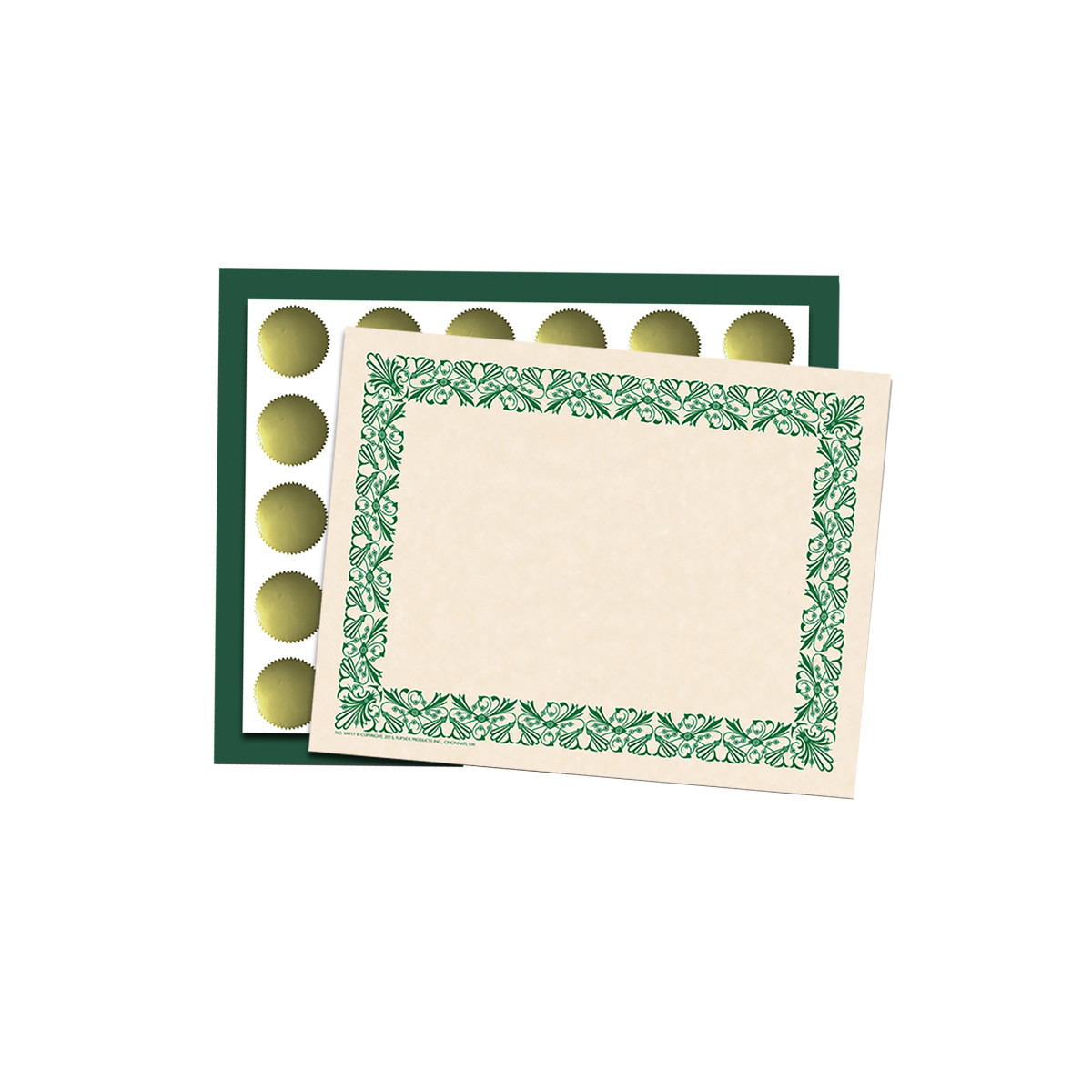 This Art Deco Green Border Paper Set is great for a variety of events. The set includes 50 sheets of border paper, 30 matching certificate folder, and 30 gold foil seals. They work great for any type of certificate or award! Create your own special message by printing or handwriting it!