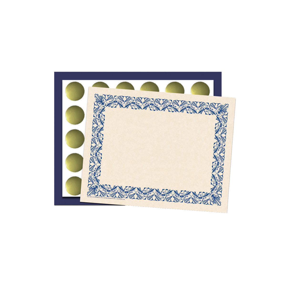 Includes border paper, matching certificate folder, and gold foil seals.