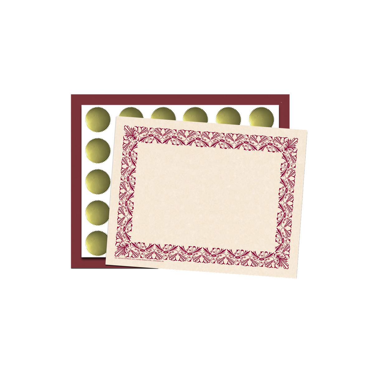 Art Deco Maroon Border Paper Set is great for a variety of certificates and awards! This set includes 50 sheets of border paper, 30 matching folders, and 30 gold foil seals. Your message can be either printed or written on the border paper.