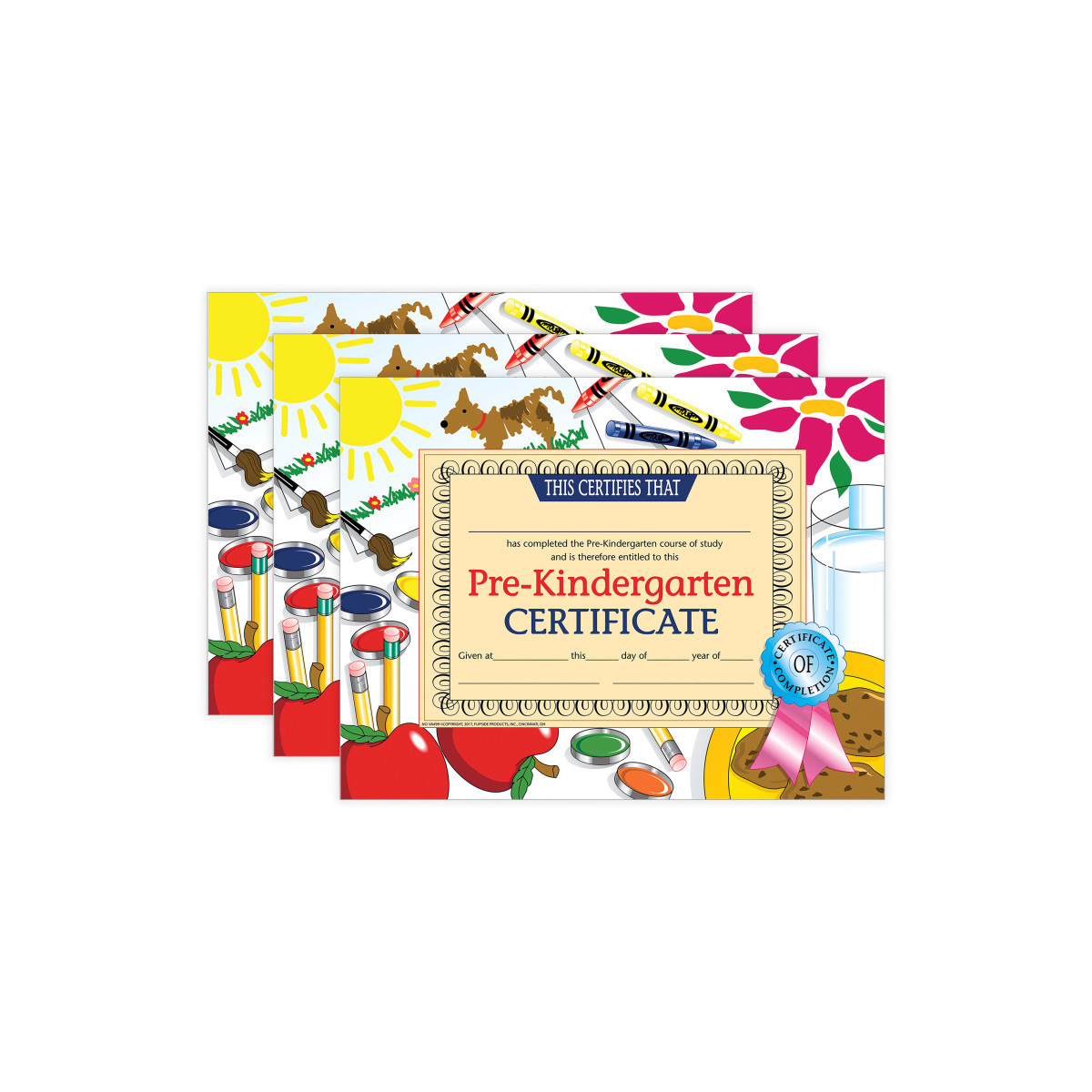 These Pre-Kindergarten Certificates are beautiful, authentically designed Hayes certificates printed in full color on high quality paper. They will become a keepsake from that special day for years to come for both the students and parents. Certificates are a great way to congratulate students for the making it through pre-kindergarten. Certificates measure 8.5" x 11". Each pack includes 30 certificates. Sold as 3 packs for a total of 90 certificates.