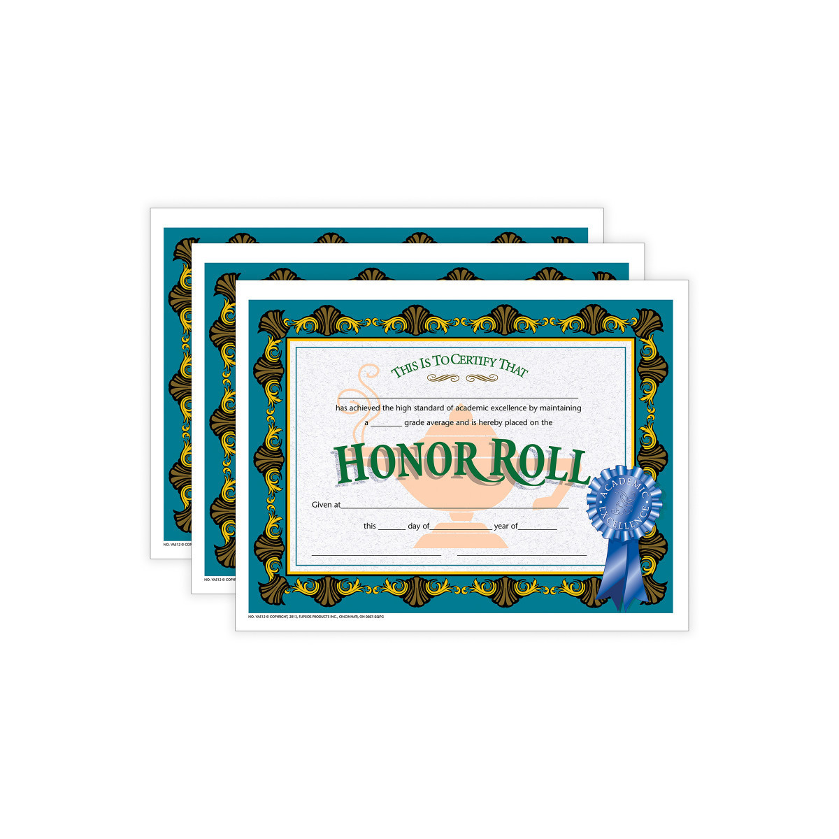 Honor Roll Certificates are a great way to reward the students who put a lot of work in throughout the year. They will become a keepsake for years to come. These blank certificates can either be handwritten or printed with our downloadable template. Each individual pack contains 30 certificates and measure 8.5" x 11". Sold as 3 packs, 90 certificates total.