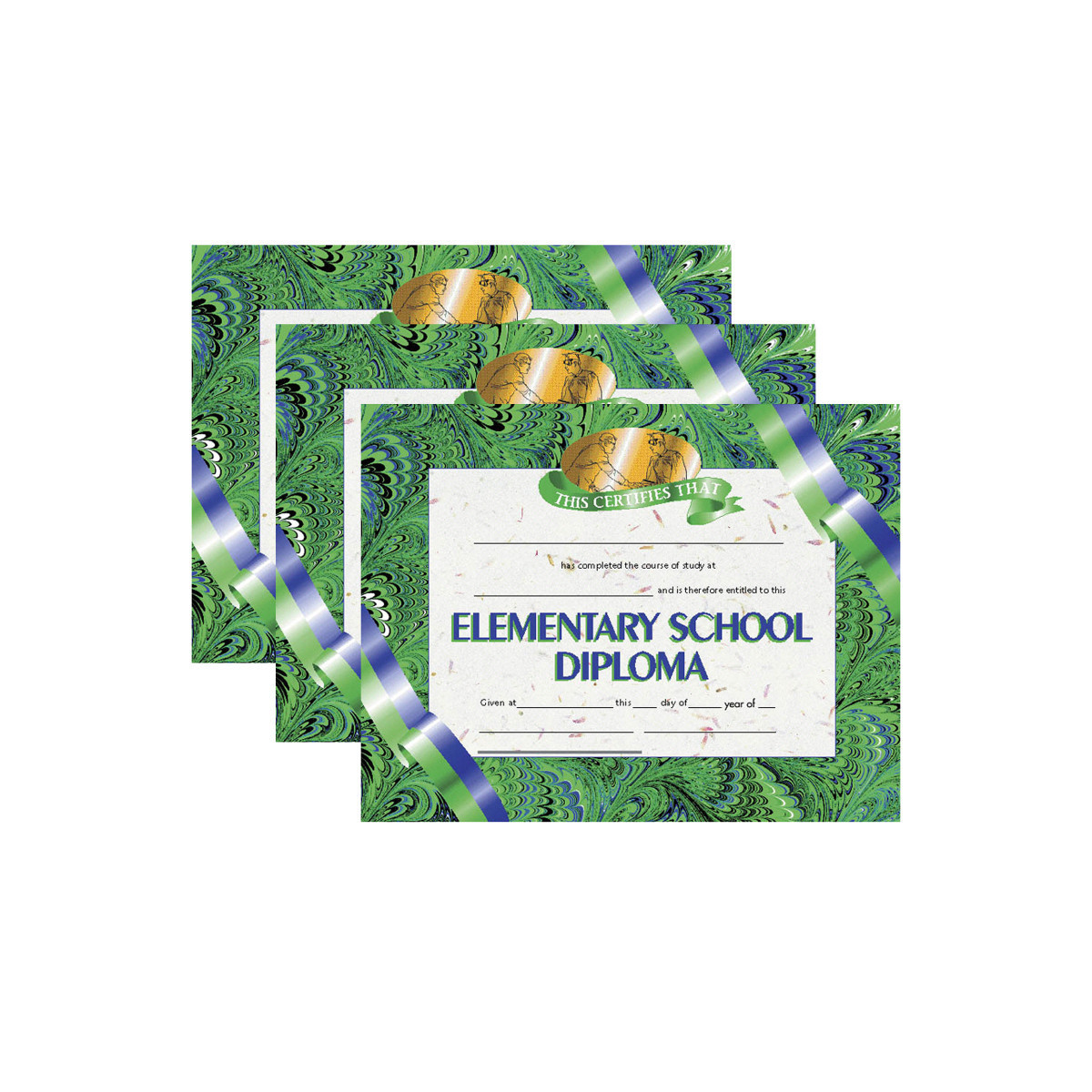 Elementary School Diploma congratulate students who have graduated. These beautiful, authentically designed Hayes diplomas are printed in full color on high quality paper. They will become a keepsake from that special day for years to come for both the students and parents. Diplomas measure 8.5" x 11". Each pack includes 30 diplomas. Sold as 3 packs for a total of 90 diplomas.