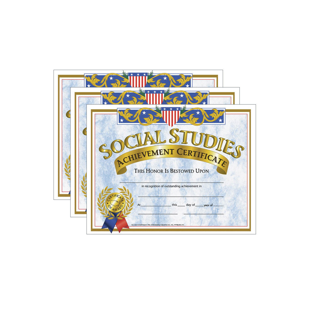 Social Studies Achievement Certificates are great to give out to students who have excelled in their social studies class! These beautifully designed Hayes certificates features a light blue and white marbled background. These social studies awards are great to give out at end of the school year parties and award ceremonies. These blank achievement certificates can be personalized with the student's name and information regarding the certificate. These blank achievement certificates can be personalized with a downloadable template. Measures 8.5" x 11". Each pack includes 30 certificates. Sold as 3 packs for a total of 90 certificates.