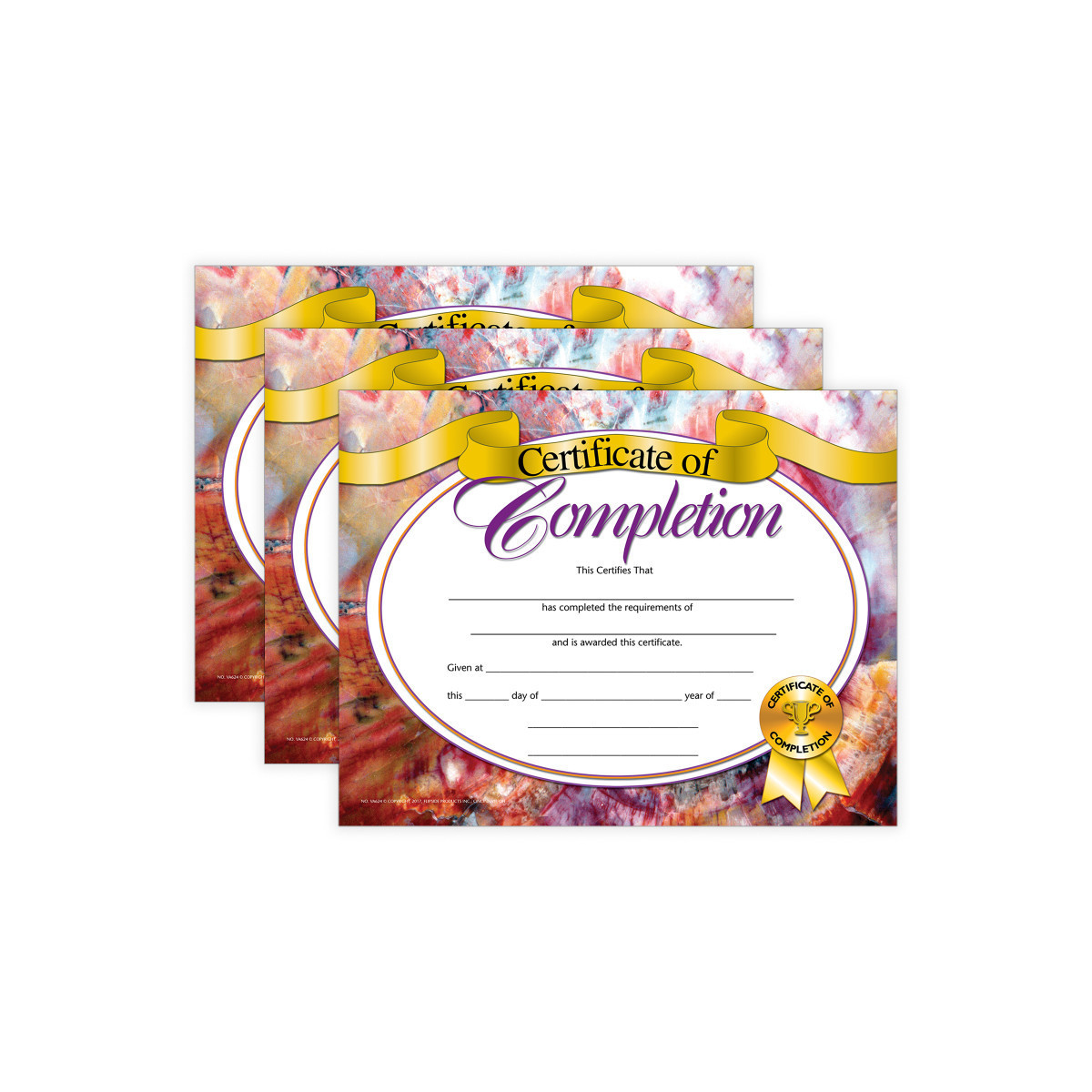 Certificate of Completion awards someone for finishing a class or other activity. These beautifully designed Hayes certificates are printed in full color on high quality paper. These are great for teachers and administrators to give out to students at end of the school year parties and award ceremonies. Certificates measure 8.5" x 11". Each pack includes 30 certificates. Sold as 3 packs for a total of 90 certificates.