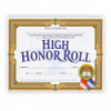 Certificate reads: This is to certify that _____ has achieved the high standard of academic excellence by maintaining a _____ grade average and is hereby placed on the High Honor Roll. Awarded at _____ School this _____ day of _____ year of _____.
