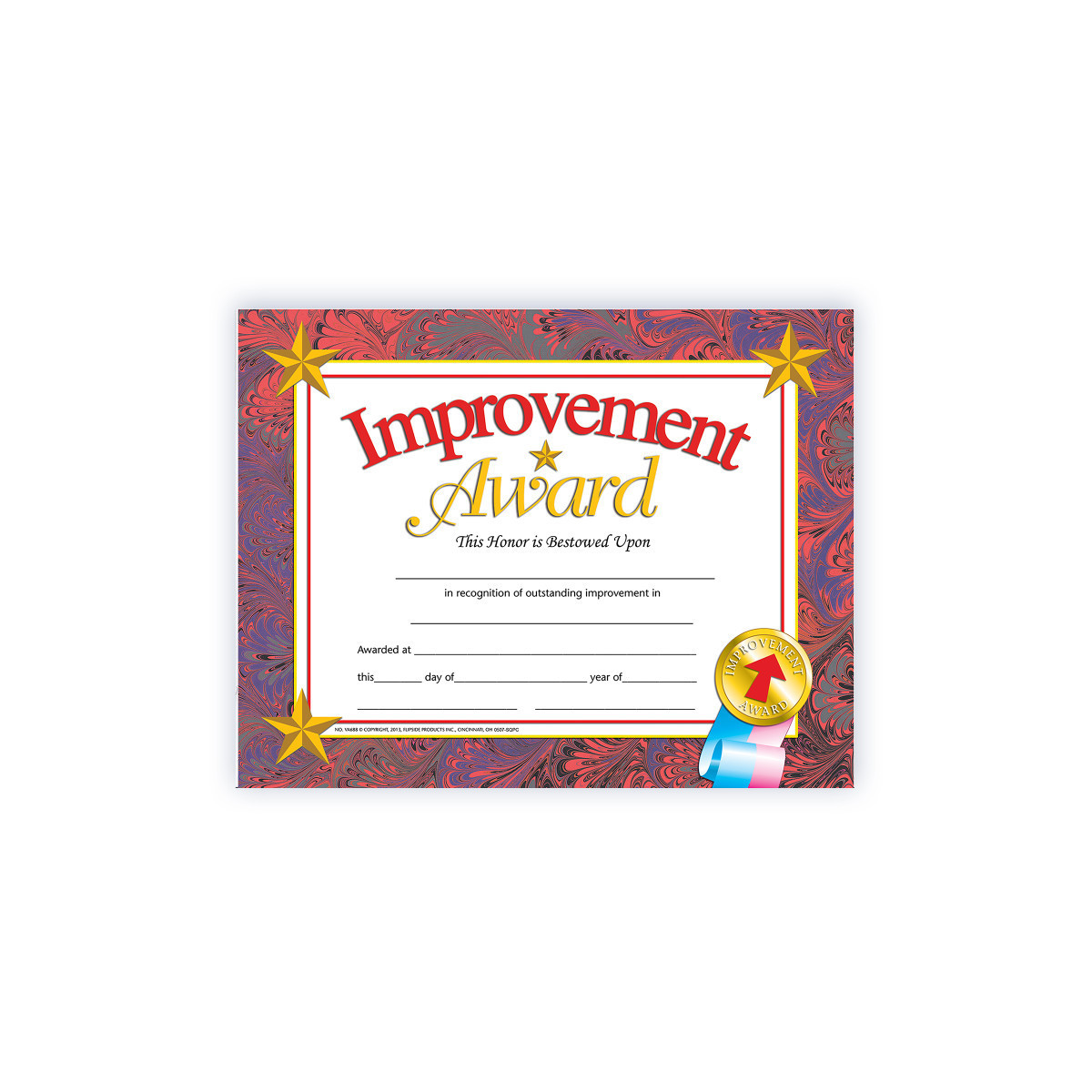 Improvement Award Certificate is a great way to recognize students for their hard work and dedication to bring up their grades. These authentic Hayes certificates are printed in full color on high quality paper. Teachers and administrators can give these out at end of the year parties and award ceremonies. These student certificates are also great as classroom incentives. Certificates measure 8.5" x 11". Each pack includes 30 certificates.