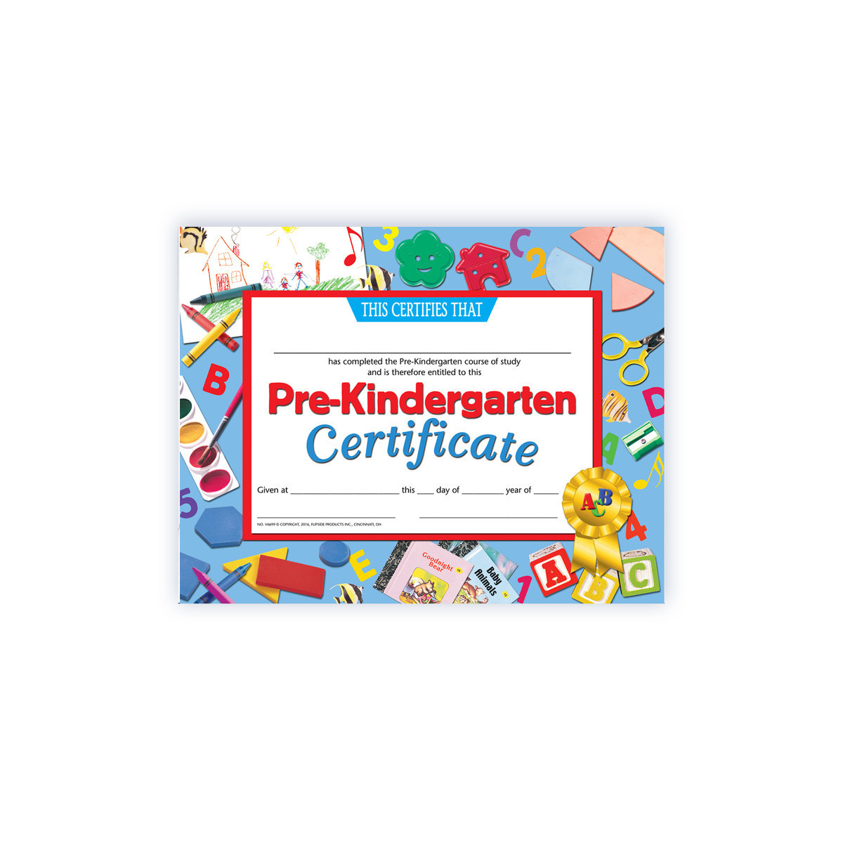 This best selling Hayes certificate is great to give out to students at end of the year parties, graduations, and award ceremonies. Pre-Kindergarten Certificates feature a primary styled border. These student certificates are printed in full color on high quality matte paper. Downloadable template is available. Inkjet and laser printer friendly. Each individual pack contains 30 certificates and measure 8.5" x 11".