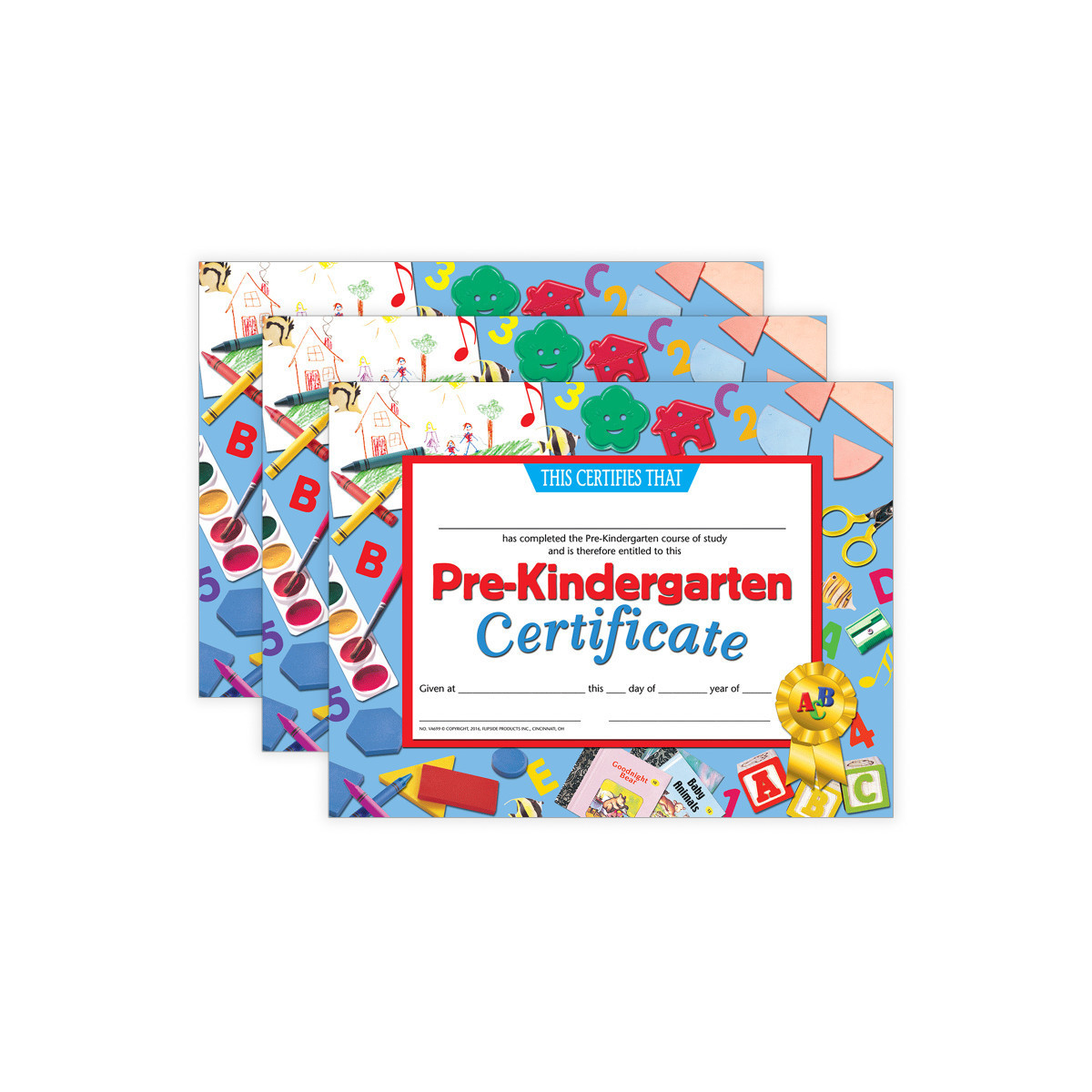 This best selling Hayes certificate is great to give out to students at end of the year parties, graduations, and award ceremonies. Pre-Kindergarten Certificates feature a primary styled border. These student certificates are printed in full color on high quality matte paper. Downloadable template is available. Inkjet and laser printer friendly. Each individual pack contains 30 certificates and measure 8.5" x 11". Sold as 3 packs, 90 certificates total.