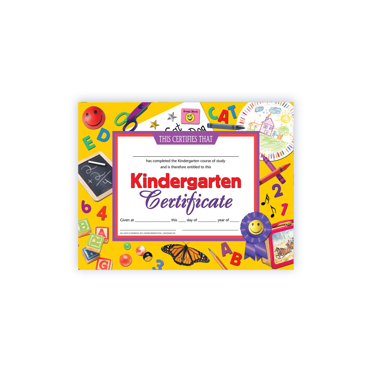 Kindergarten Certificates feature a primary border that appeals well to young students. These Hayes certificates are great way to congratulate students for completing kindergarten. These student certificates are printed in full color on high quality matte paper. They can be personalized with our downloadable template. Inkjet and laser printer friendly. Perfect to give out to student at end of the year parties, award ceremonies, and graduations. Each individual pack contains 30 certificates and measure 8.5" x 11".