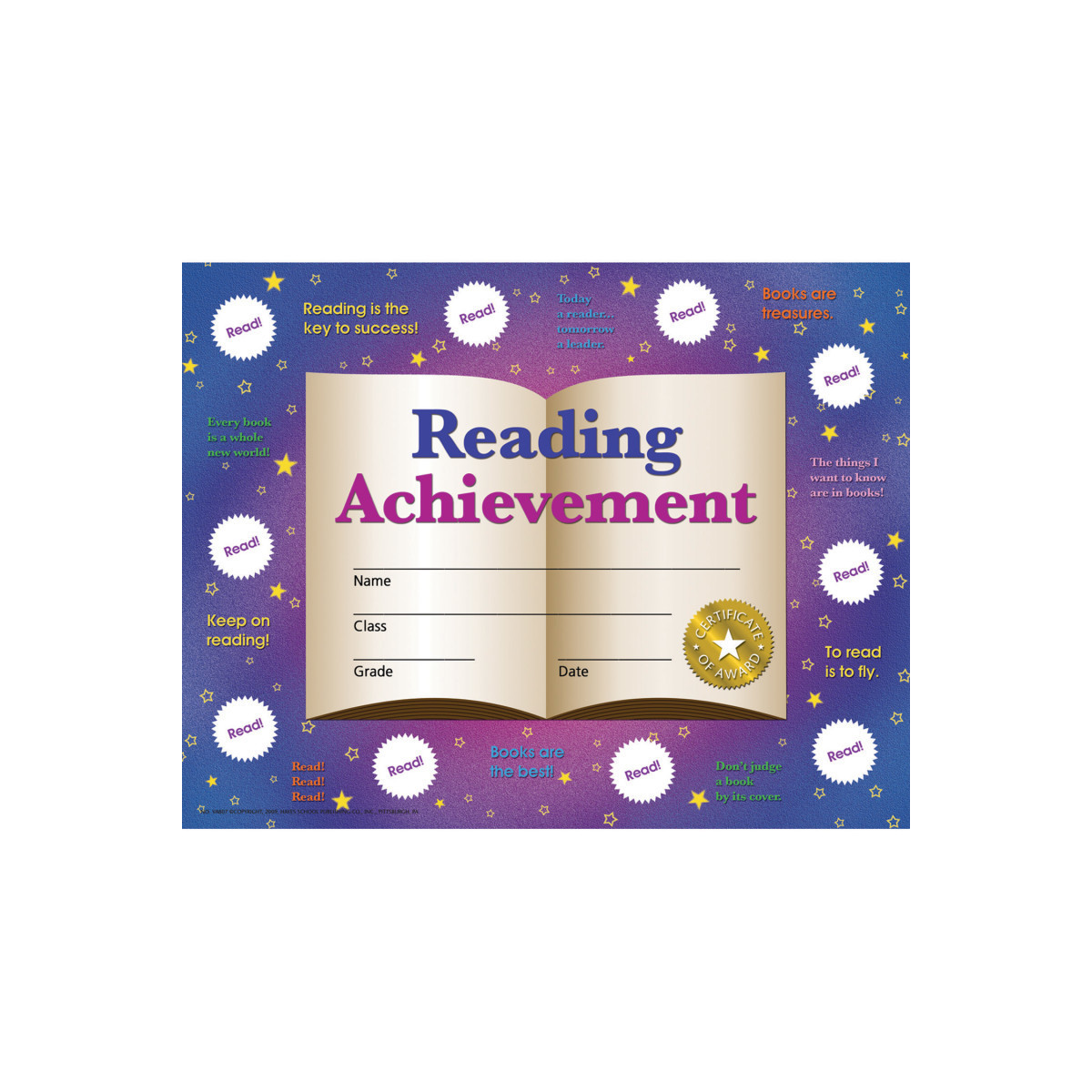 Recognize your student's academic success with Hayes' Reading Achievement Stick-to-it Certificates!