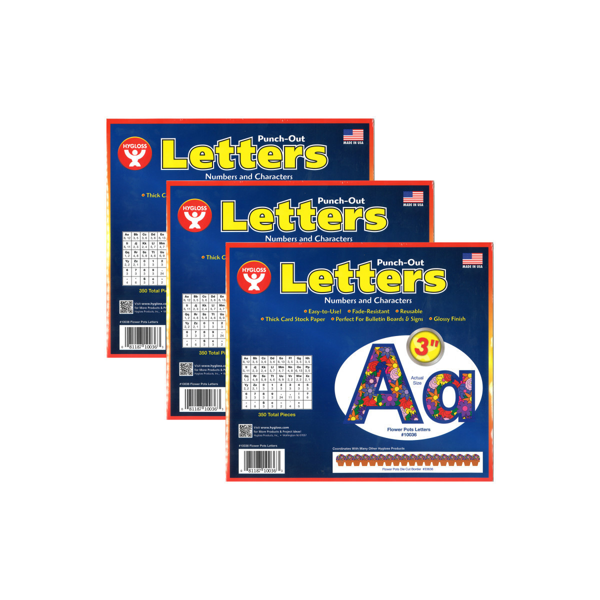 Hygloss Flower Pots Punch-Out Letters make it simple to decorate your bulletin board or classroom with amazing results. These letters and characters measure 3 inches tall. Printed on premium quality card stock. Each pack includes 350 characters. Sold as 3 packs for a total of 1080 characters.