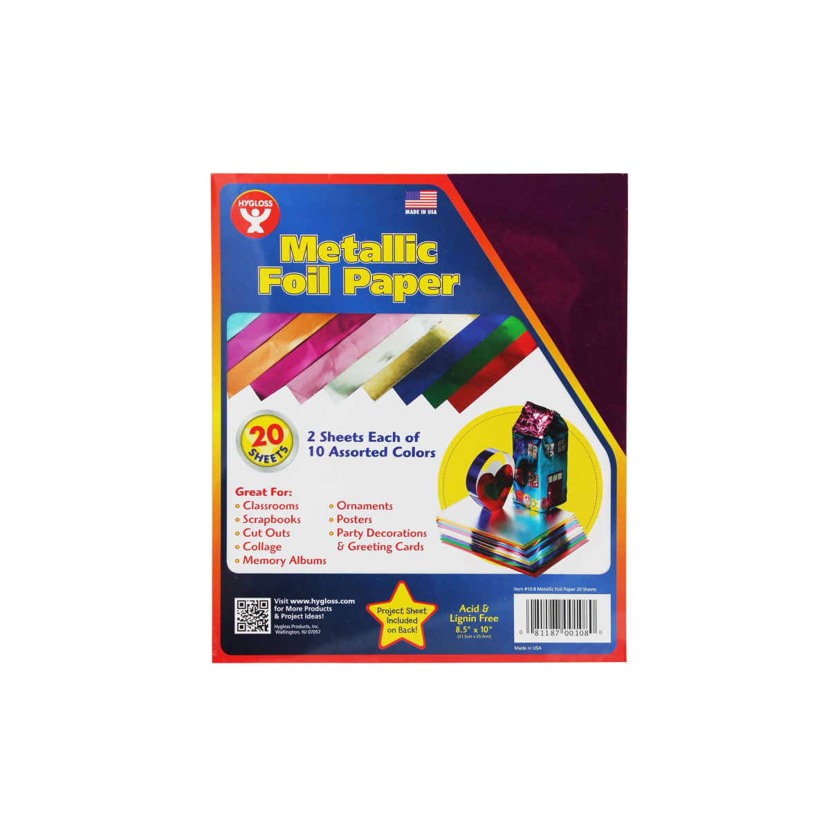 Metallic foil paper comes in attractive colors that makes crafting exciting. Use our metallic paper for crafts projects such as dioramas, scrapbooking and card making. Also use for birthday party crafts and Christmas decorations. Each sheet measures 8.5" x 10". Each pack includes 20 sheets