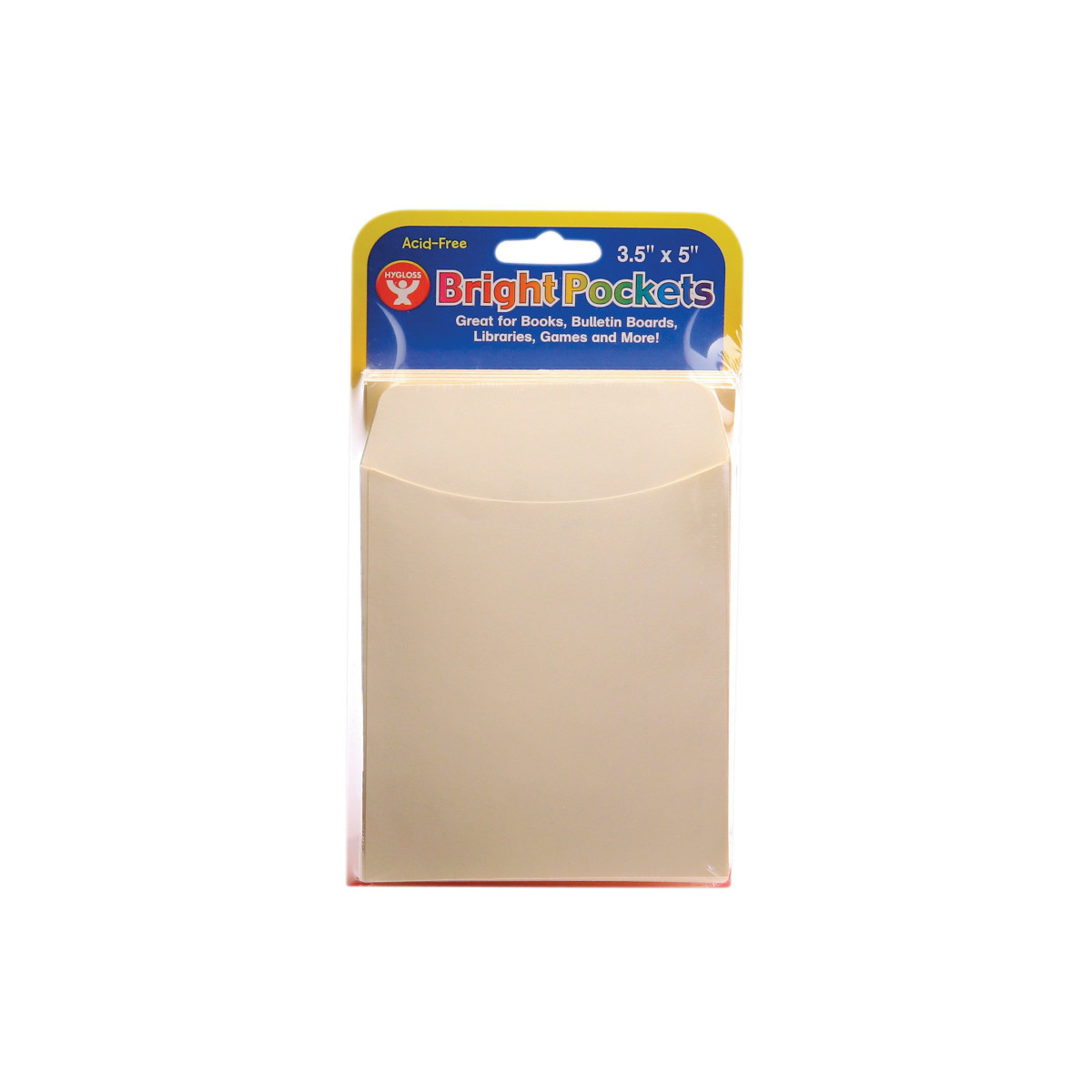 Manila Library Pockets are an education standard and classic teacher's resource. These pockets are an indispensable part of any school's supply closet. Pockets are great for games, creating special books, learning activities or duties. Also use for bulletin boards and library pockets. Pockets measure 3.5" x 4.5". Each pack includes 40 manila non-adhesive library pockets.