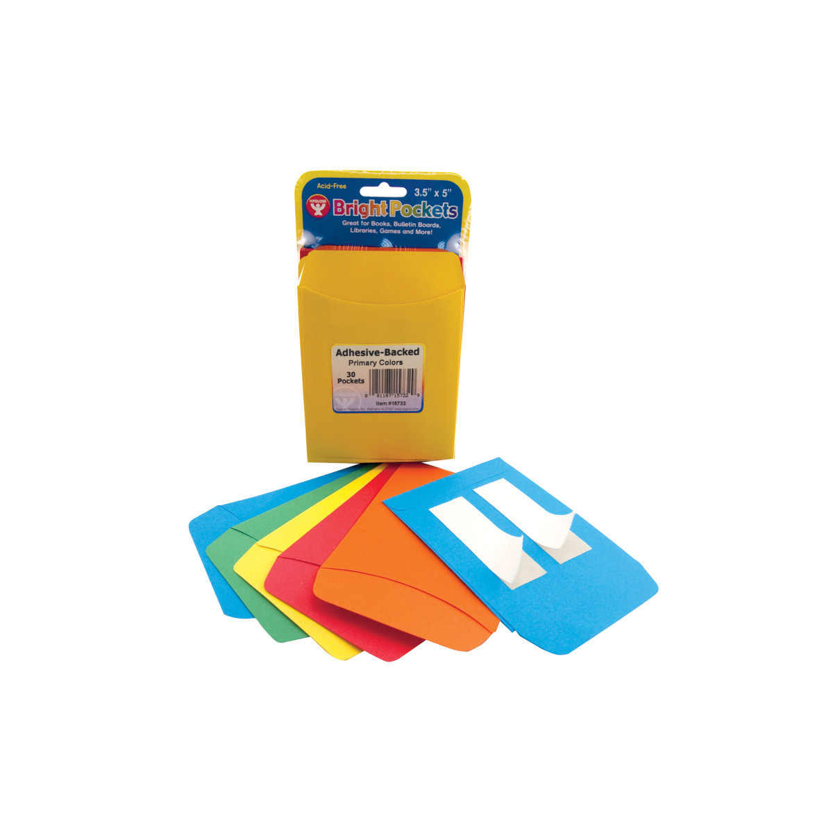 These Self-Adhesive Library Pockets are great for games, creating special books, learning activities and job charts. Great to use for bulletin boards. Acid-free, fade-resistant. Measures 3.5" x 4.875". Each pack includes 30 adhesive pockets, 6 each of 5 colors.