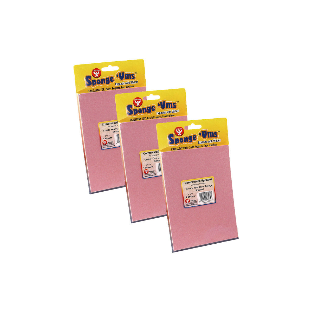 Use Compressed Sponges by Hygloss when you want great quality, highly resilient craft sponges that you can cut into any shape or object. Craft sponges can be used for sponge painting on walls, making borders, designing t-shirts and more. Each compressed sponge sheet measures 5" x 7". Each pack includes 4 sheets. Sold as 3 packs for a total of 12 sheets.