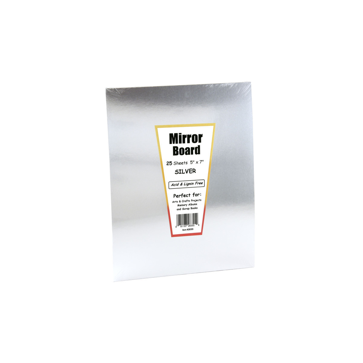 Hygloss Mirror Board has a metallic foiled surface on one side, with white on the reverse side, and reflects almost like a mirror. It is made from highly reflective, super-shiny, superior quality 12 pt. card stock. Easy to cut and glue, this mirror board is ideal for all your craft, scrapbook and decorating needs. Each sheet measures 5" x 7". Each pack includes 25 sheets.