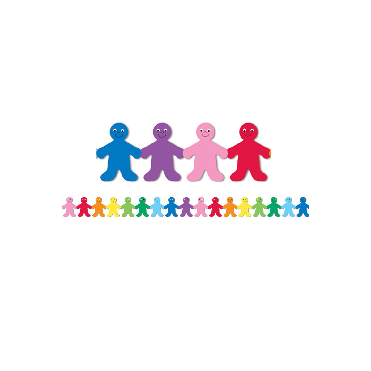 Use rainbow kids bulletin board borders to teach the fundamental preschool theme of unity and the uniqueness of each child