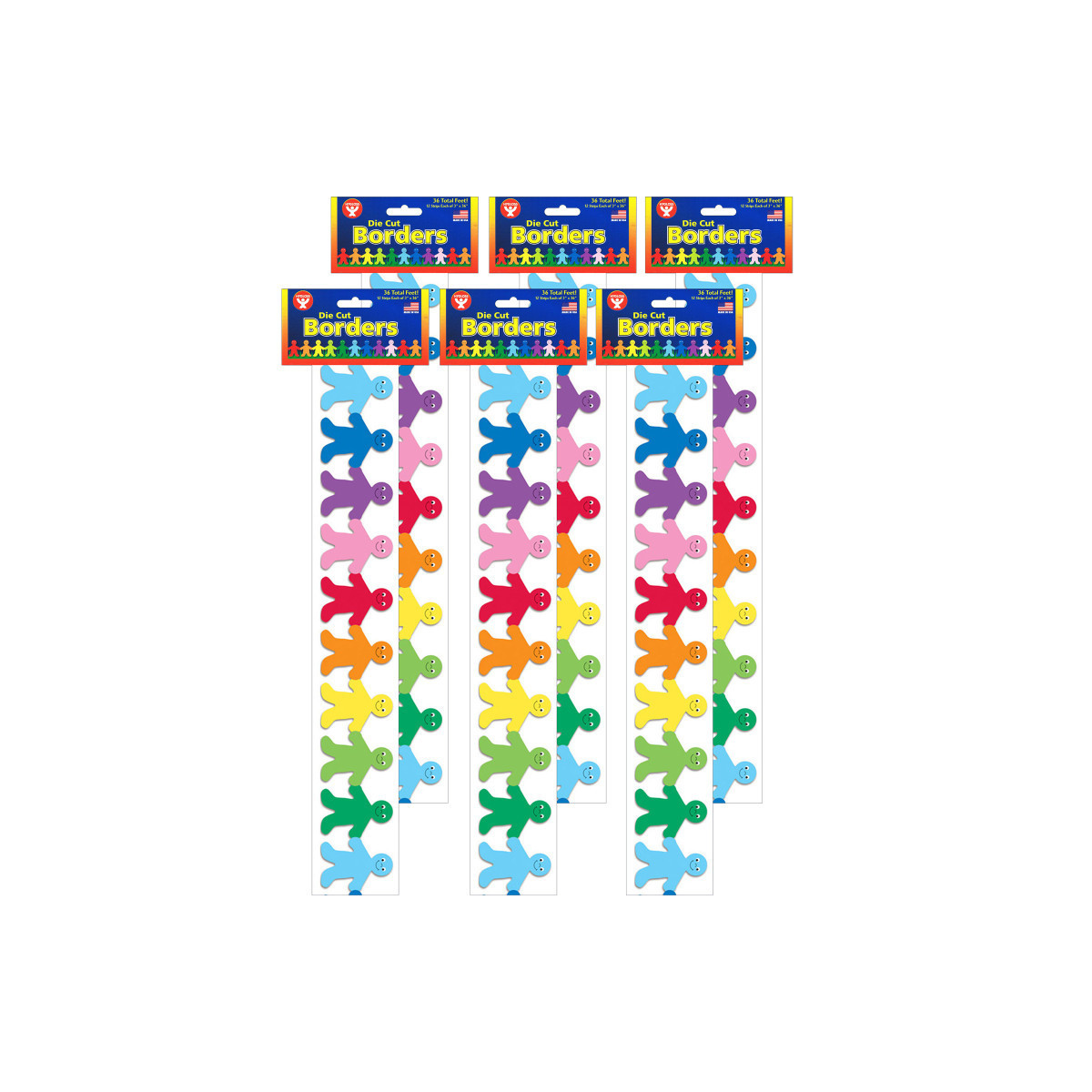 Our Rainbow People bulletin board borders are a grand way to brighten up a any classroom or bulletin board. Young students will give you an A+ when they see these Rainbow People classroom borders brightening up their bulletin boards. Use Rainbow People bulletin board borders to teach the fundamental preschool theme of unity and the uniqueness of each child. These die-cut borders are made from high quality card stock with a glossy finish. For a super-coordinated classroom, check out our entire line of RAINBOW PEOPLE THEMED PRODUCTS. Strips measures 3" x 36". Each pack includes 12 strips for a total of 36 feet of border. Sold as 6 packs for a total of 216 feet of border.